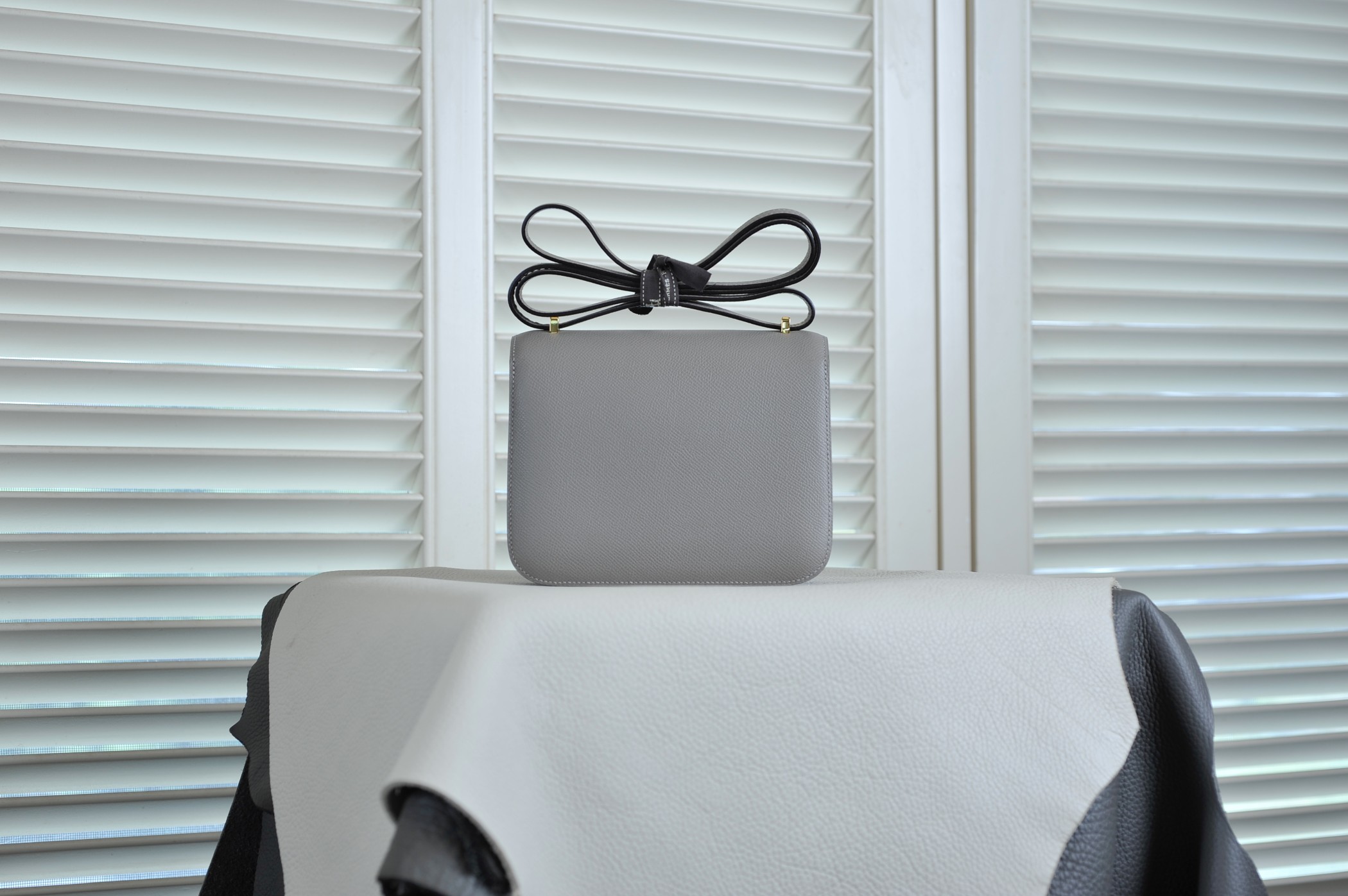 Kangkang 9 turtledove gray gold buckle epsom leather