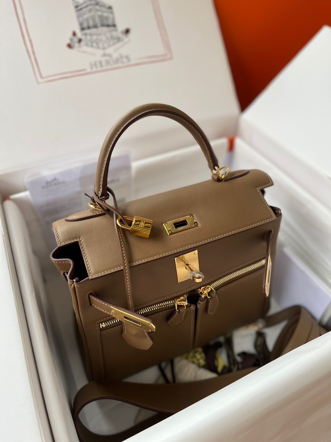 Kelly25cm gold epsom leather tinware gray lipstick powder