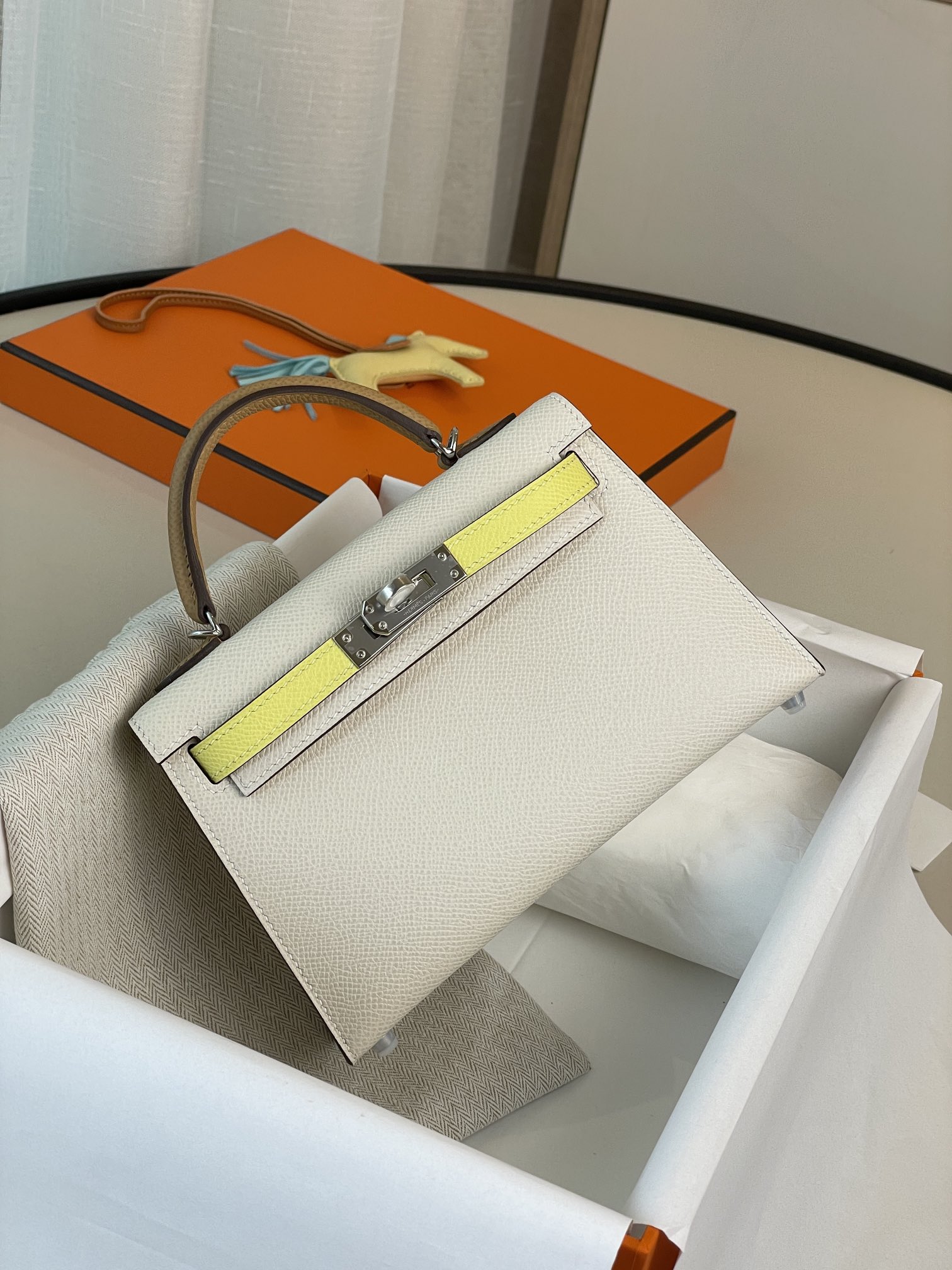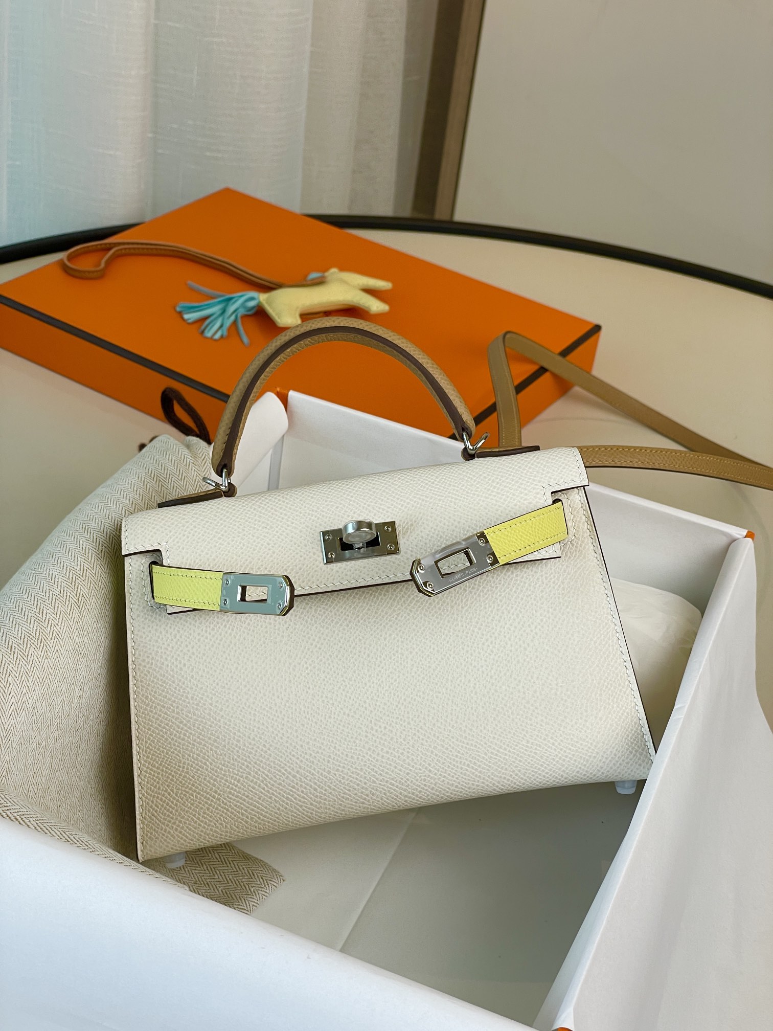mini Kelly 2nd Generation Limited Edition Three Little Cute Milkshake White Chicken Yellow Sesame Color