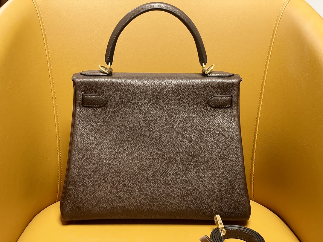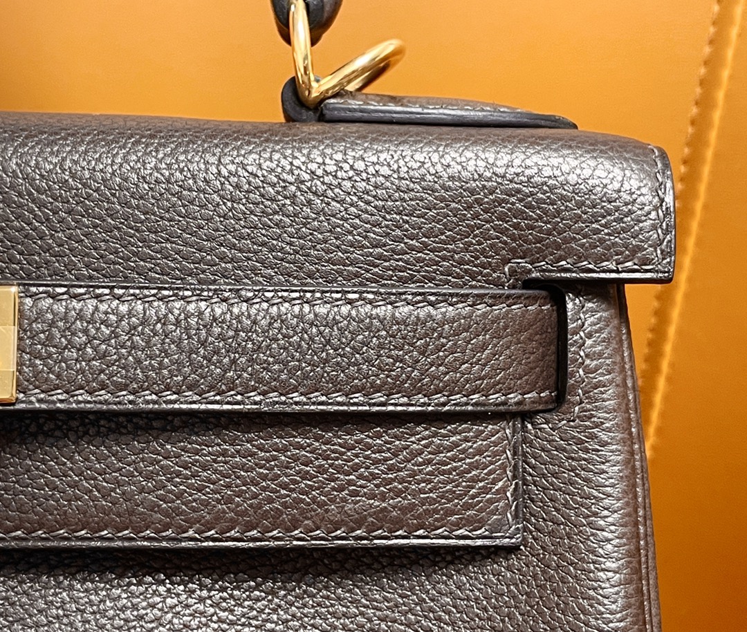 Kelly28 ebony color Fubao leather gold buckle