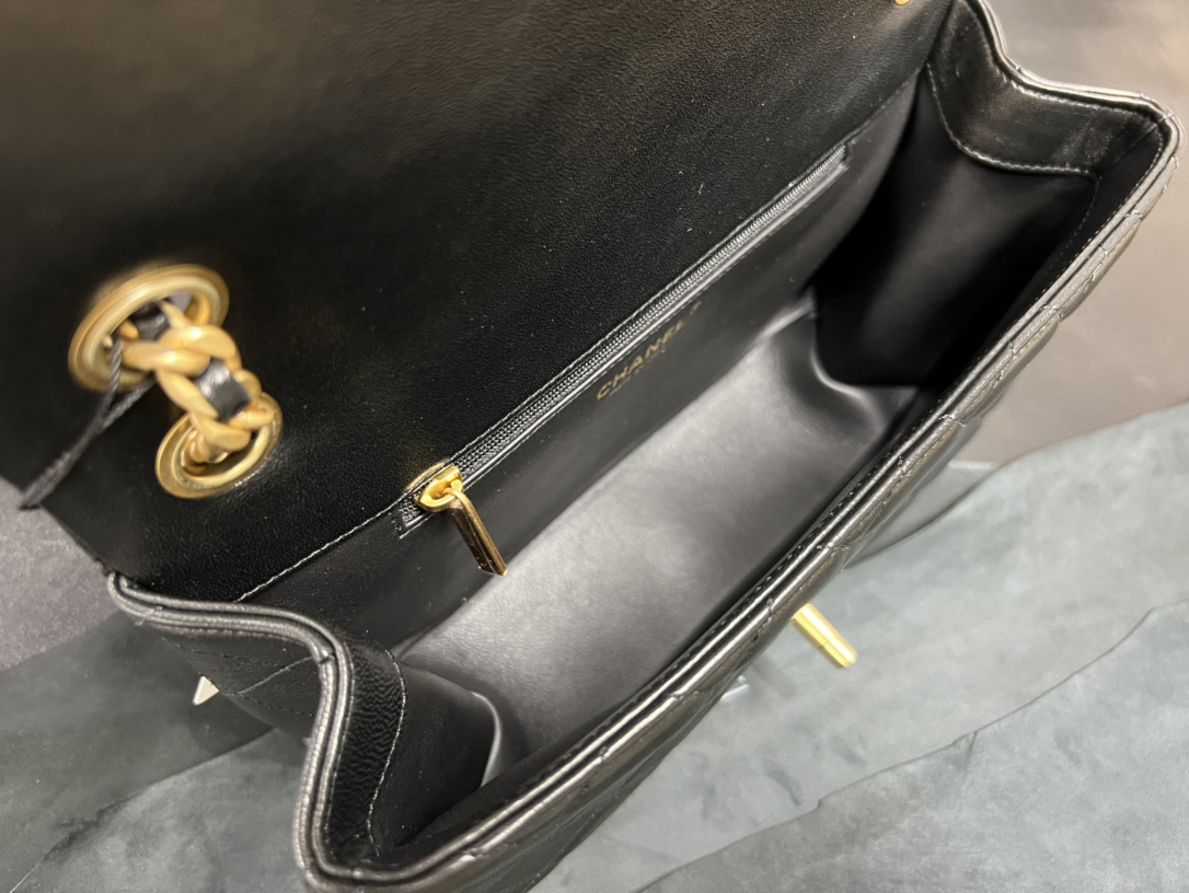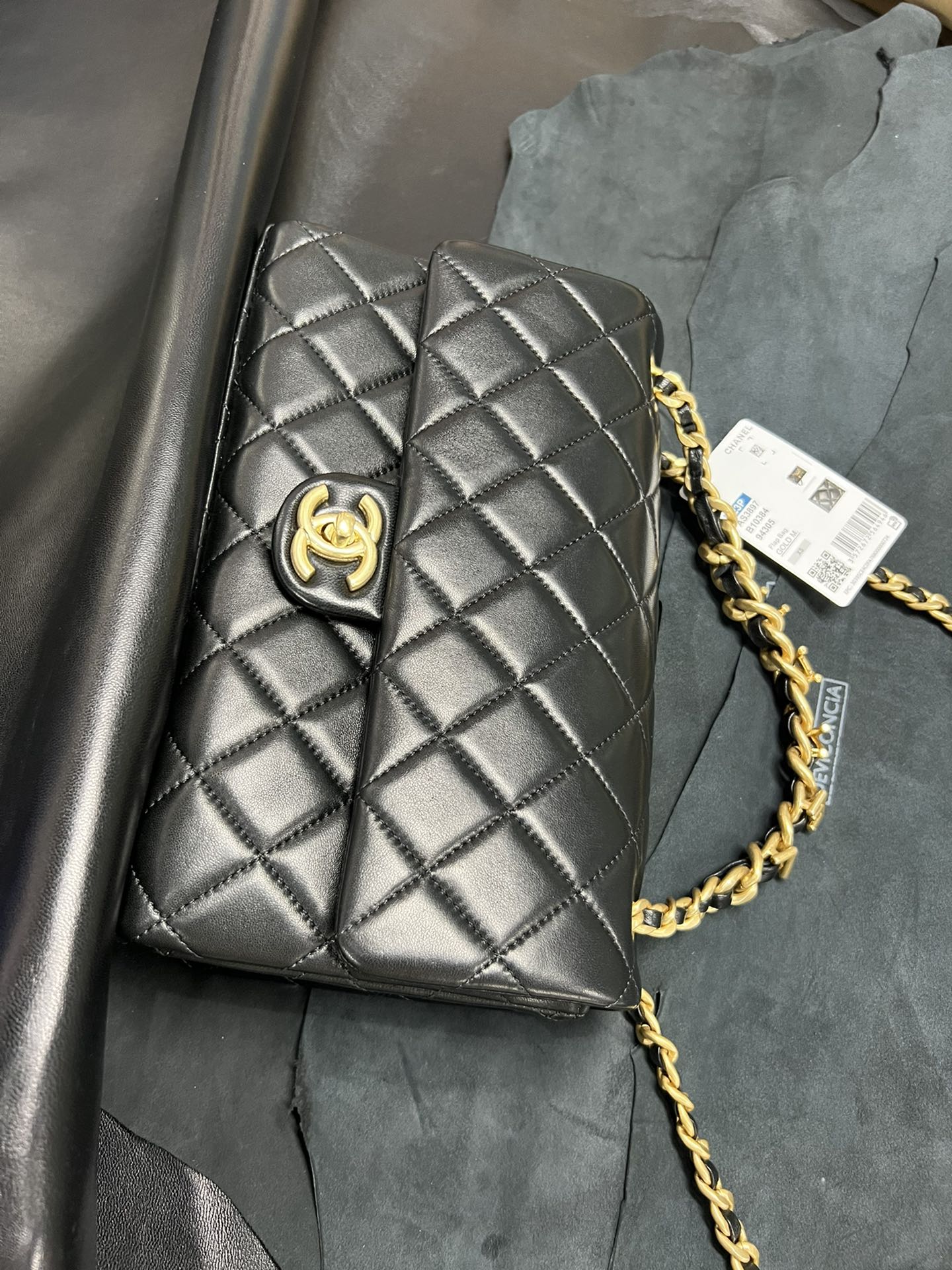 𝗖𝗛𝗔𝗡𝗘𝗟 23P New Letter Chain Flap Bag Black