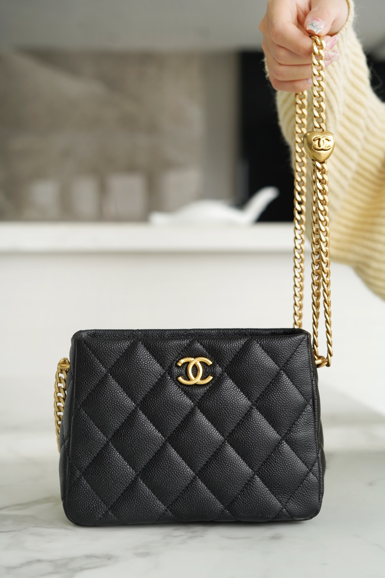 𝗖𝗛𝗔𝗡𝗘𝗟✦ 23p love chain small box ❤️ genuine leather