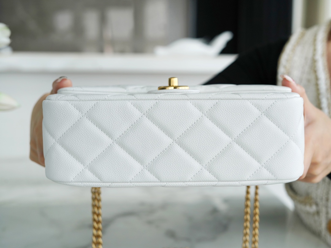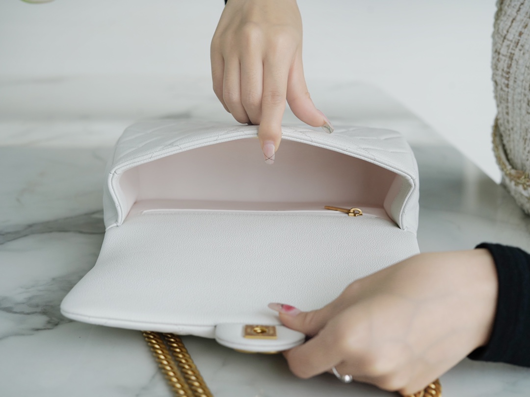 𝗖𝗛𝗔𝗡𝗘𝗟✦𝗖𝗹𝗮𝘀𝘀𝗶𝗰 𝗙𝗹𝗮𝗽23P spring and summer new love adjustment buckle square fat man white