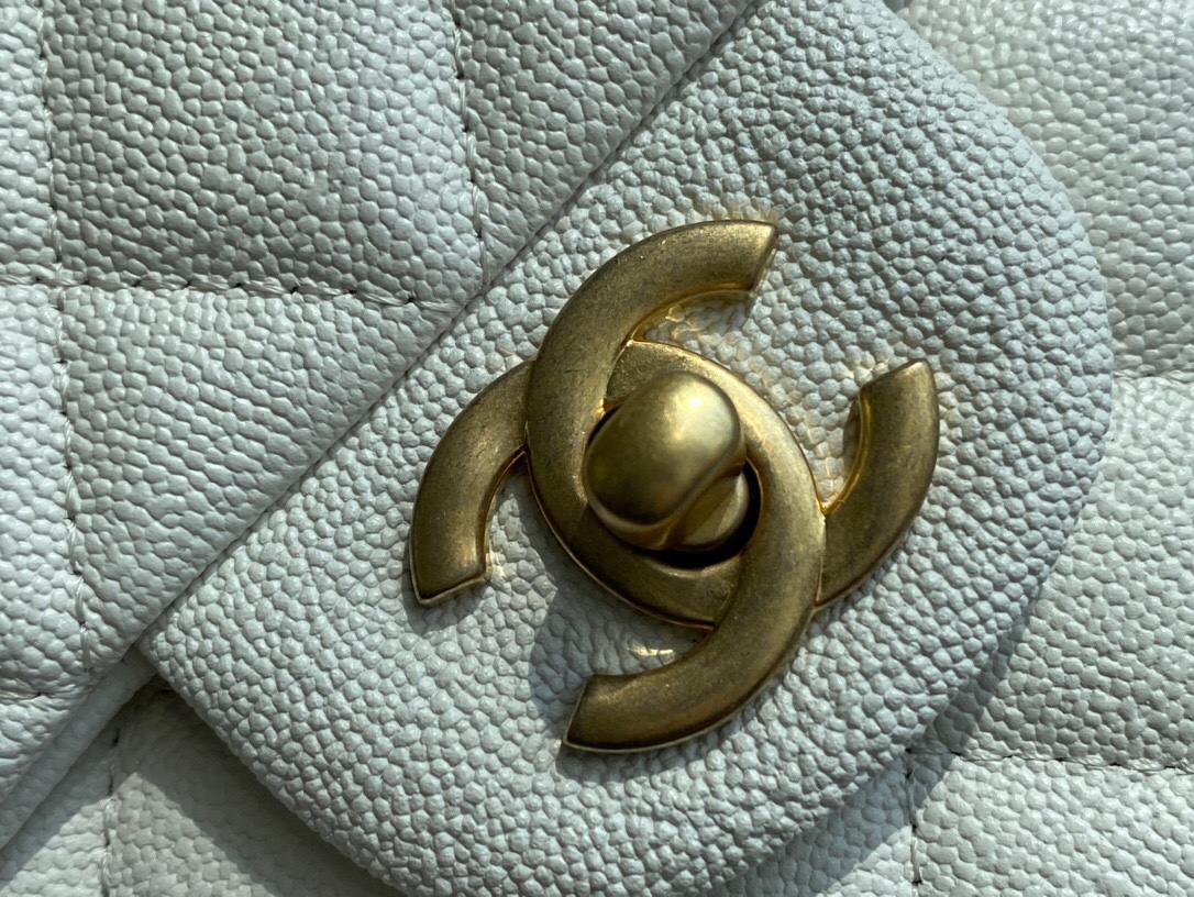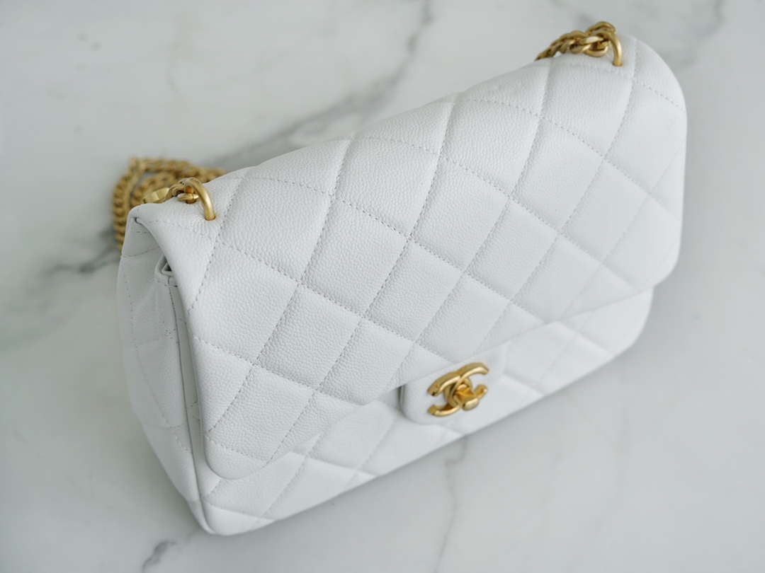 𝗖𝗛𝗔𝗡𝗘𝗟✦𝗖𝗹𝗮𝘀𝘀𝗶𝗰 𝗙𝗹𝗮𝗽23P Spring/Summer New Love Adjustable Buckle Small White