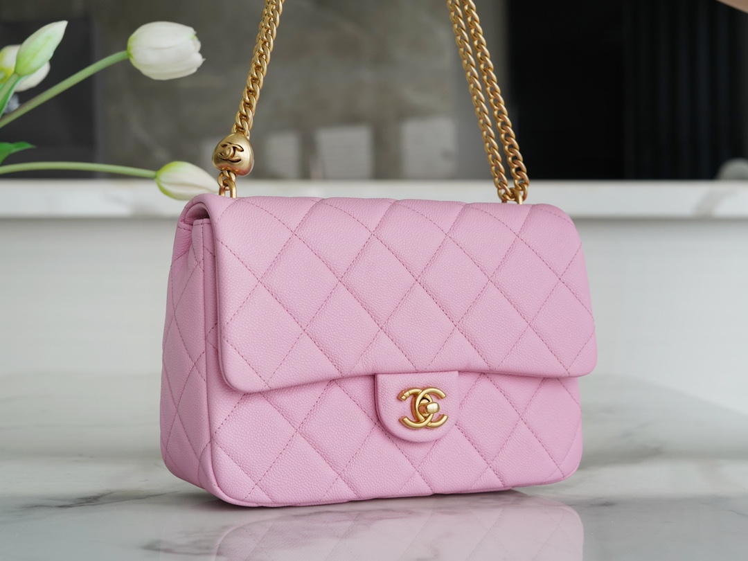 𝗖𝗛𝗔𝗡𝗘𝗟✦𝗖𝗹𝗮𝘀𝘀𝗶𝗰 𝗙𝗹𝗮𝗽23P Spring and Summer New Love Adjustment Buckle Square Fatty Pink