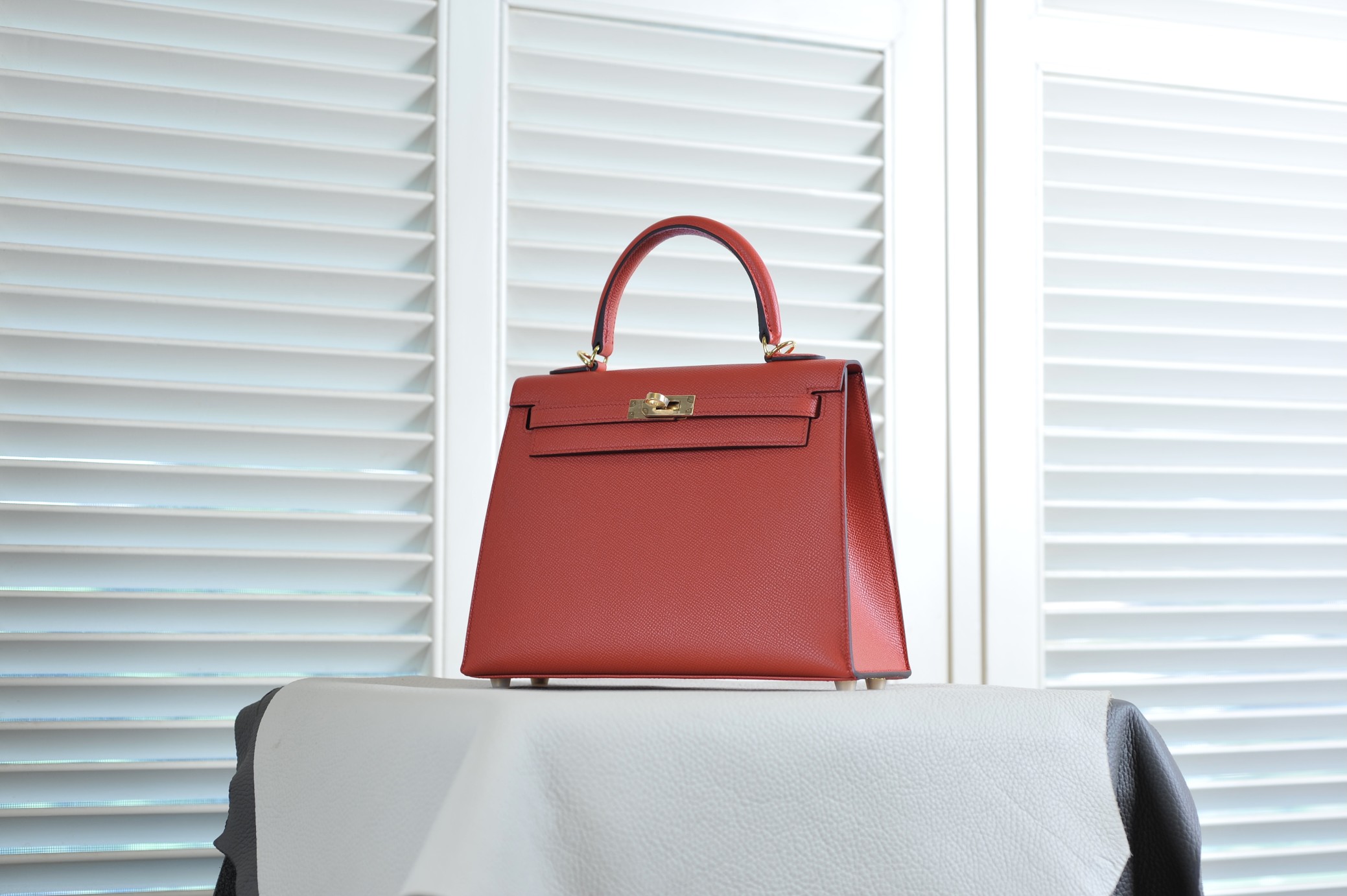Kelly25cm epsom gold buckle lipstick powder and elephant gray