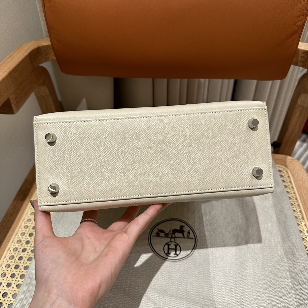 Kelly25cm epsom leather gold buckle milkshake white fight elephant gray