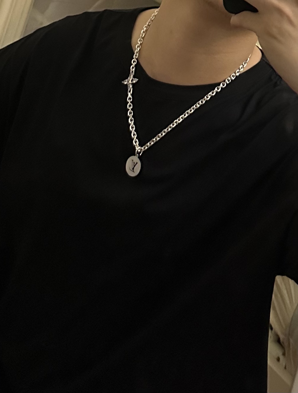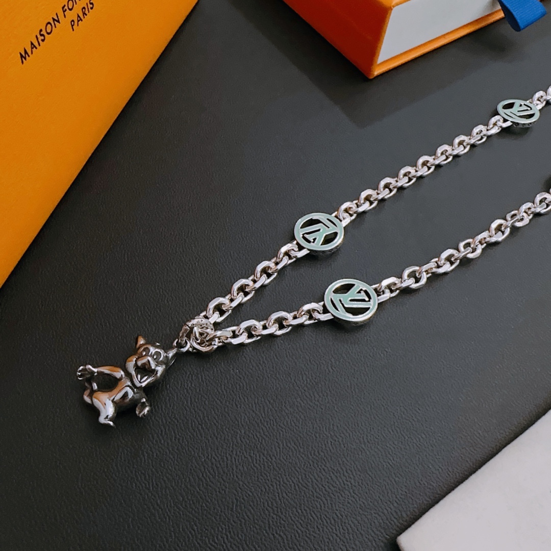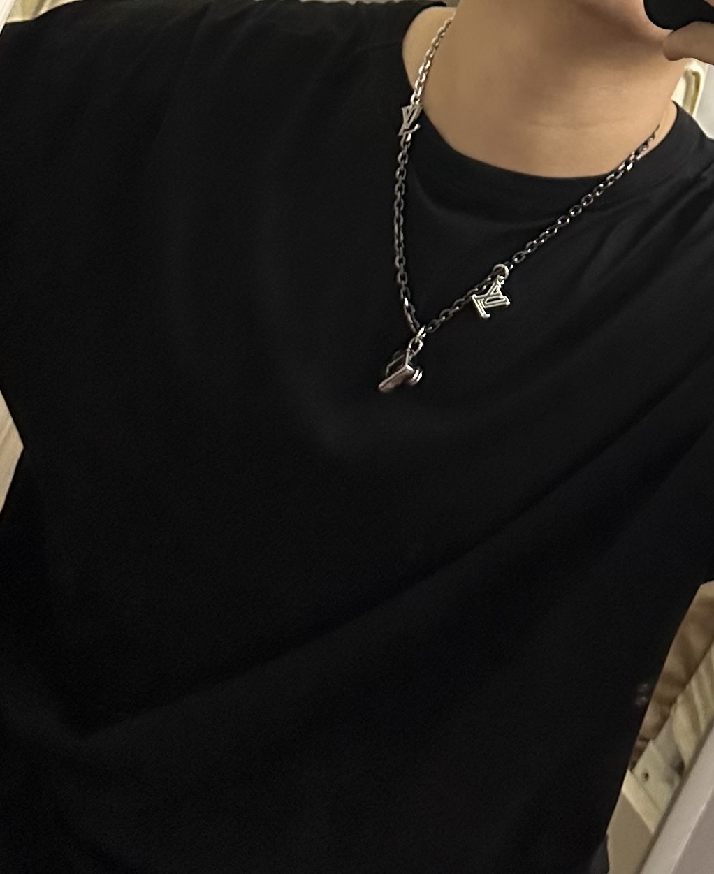Louis Vuitton vintage silver necklace, couple's version, chain length 55 cm, changeable