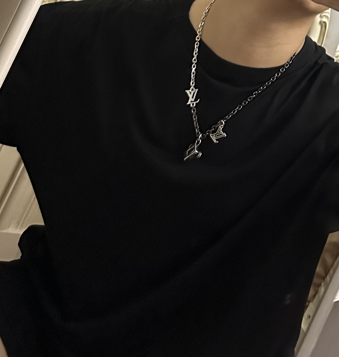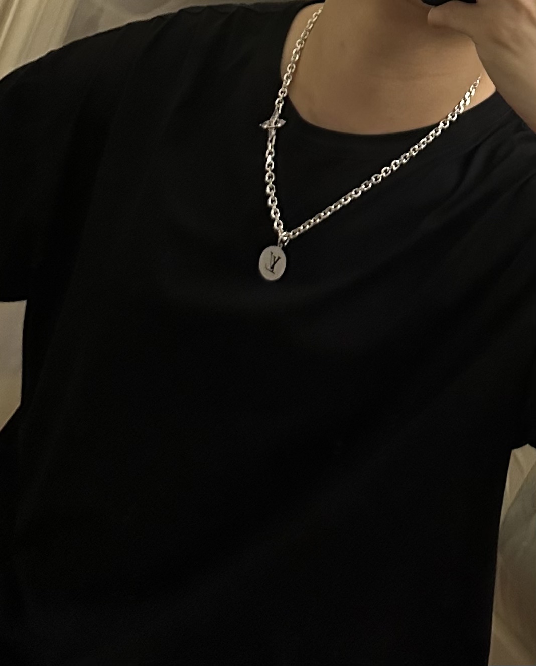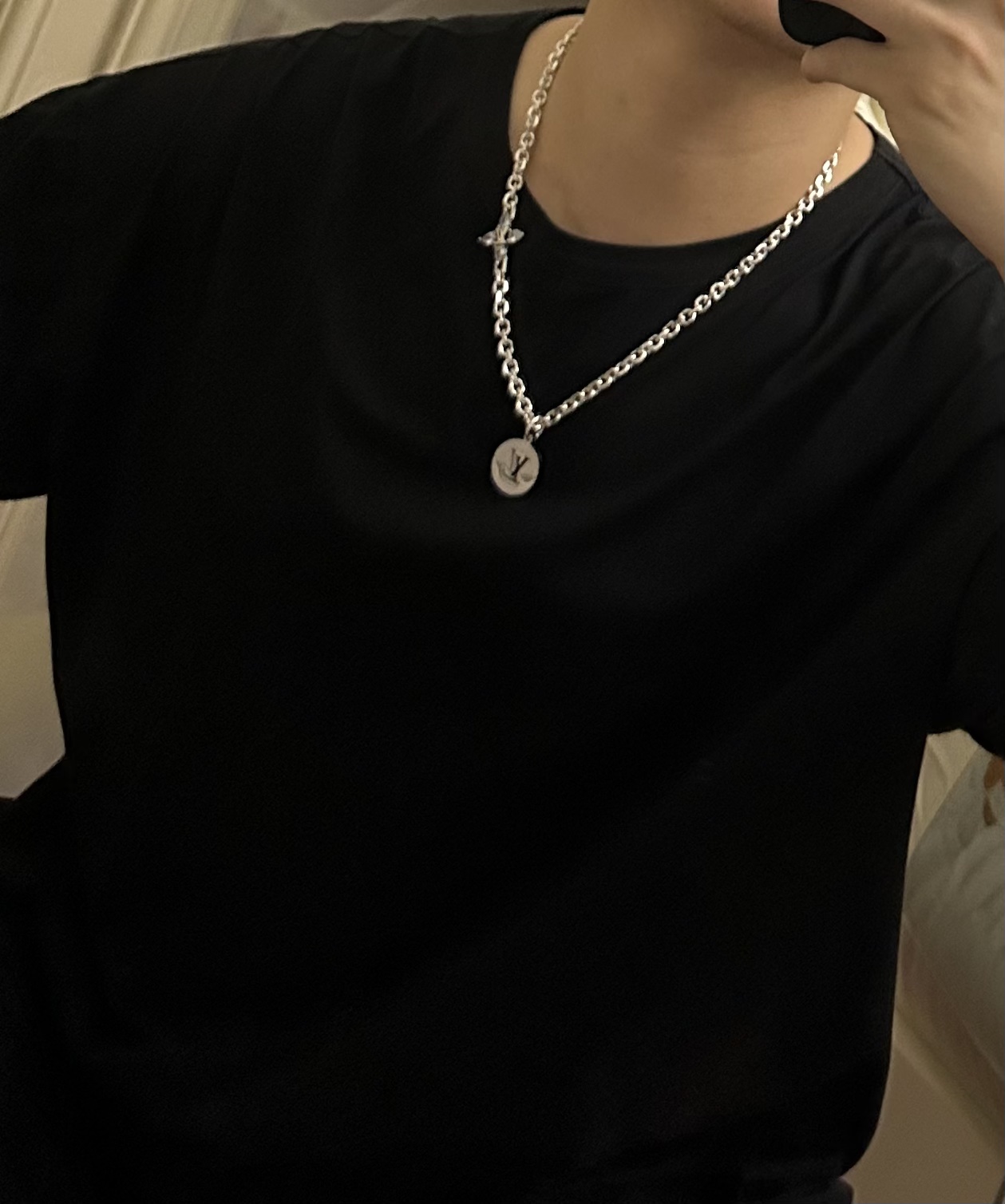 Louis Vuitton vintage silver necklace, couple's version, chain length 55 cm, changeable