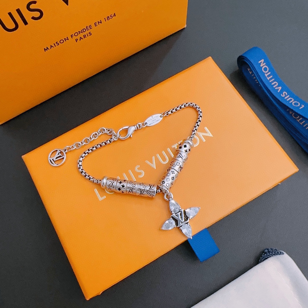 Louis Vuitton Classic Bracelet Cuban Chain Collection Vintage Silver Bracelet Size 22cm20cm18cm Changeable length