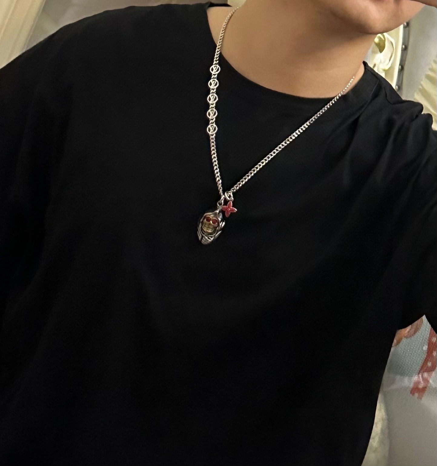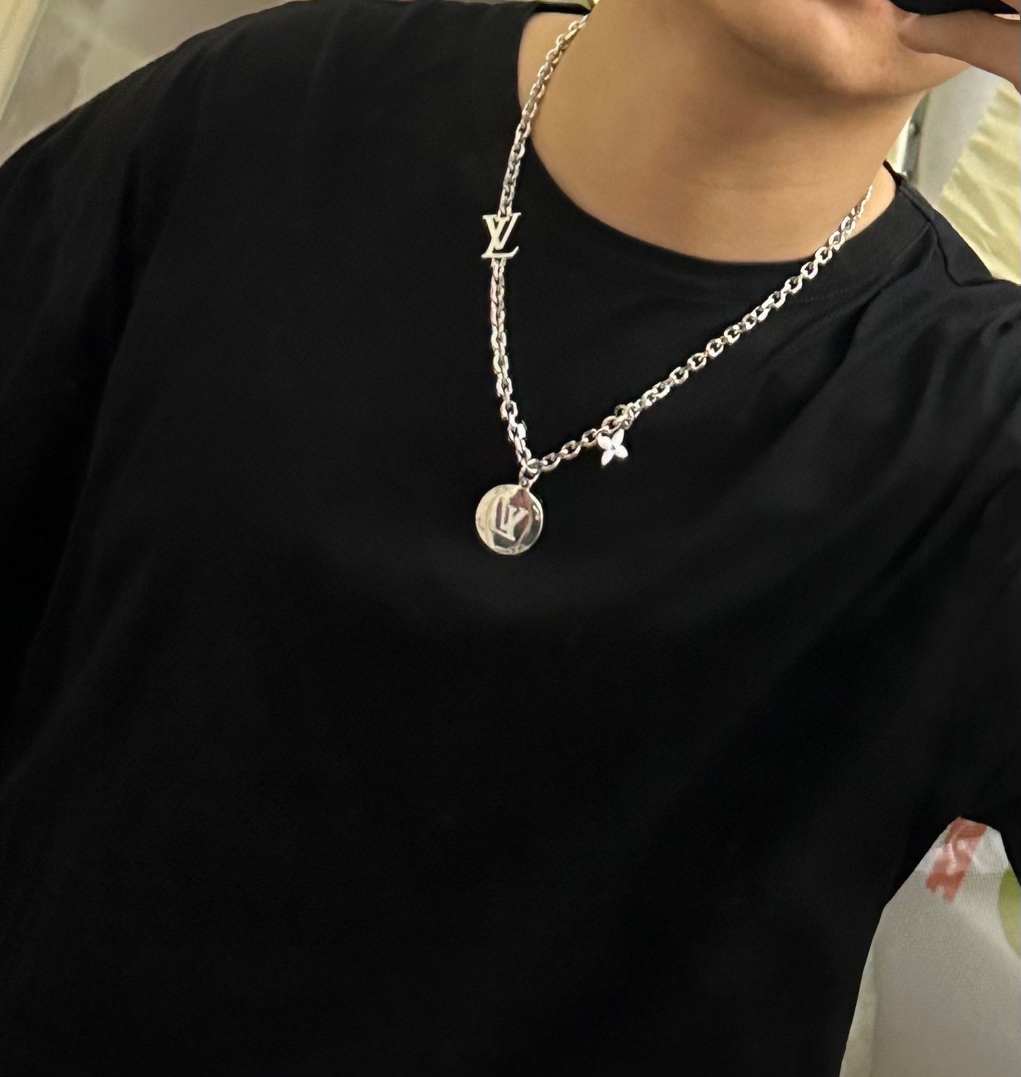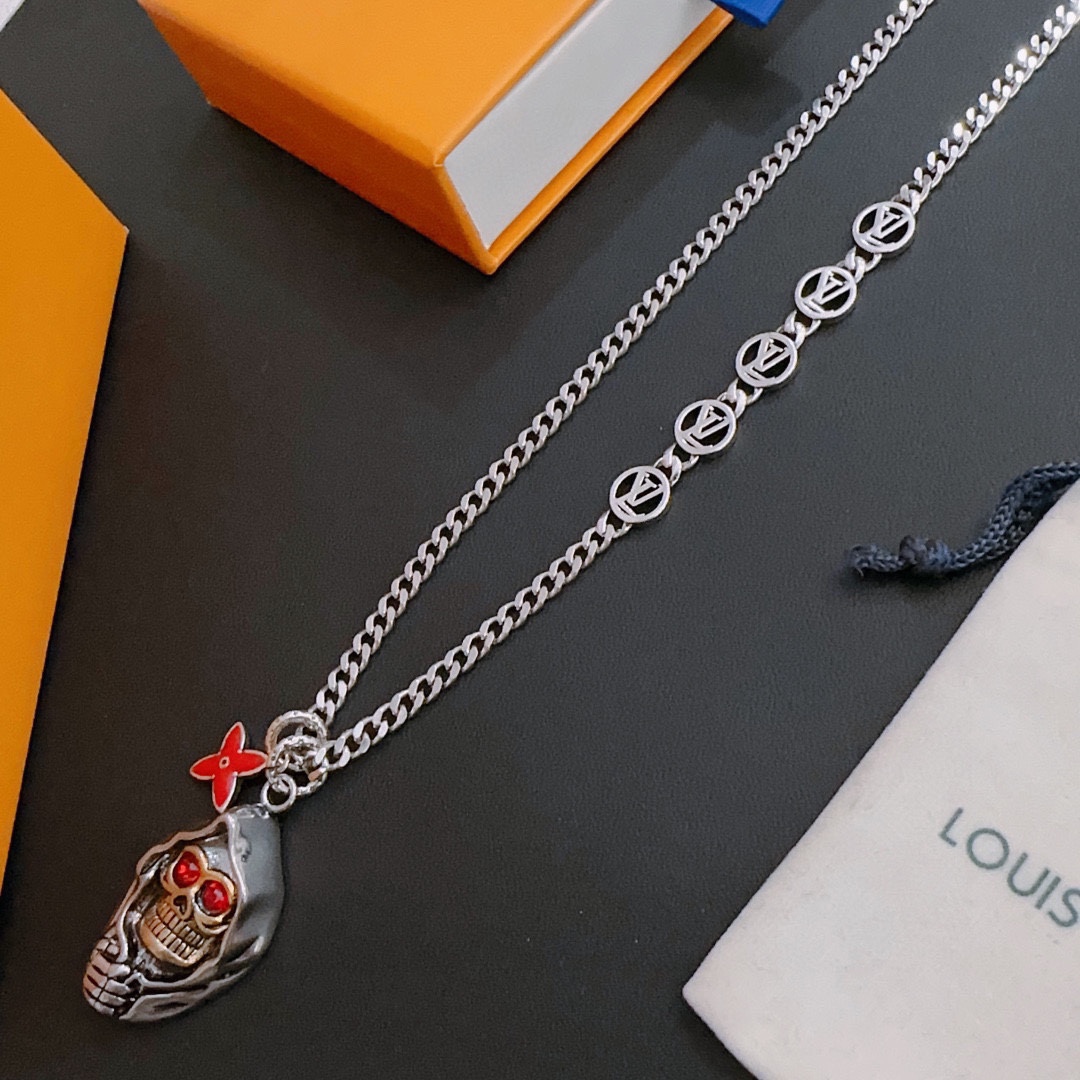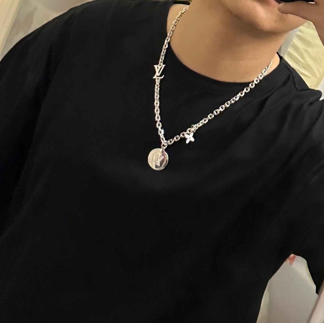 Louis Vuitton Rockabilly punk thai silver vintage silver necklace for couples with a 60cm chain length that can be changed