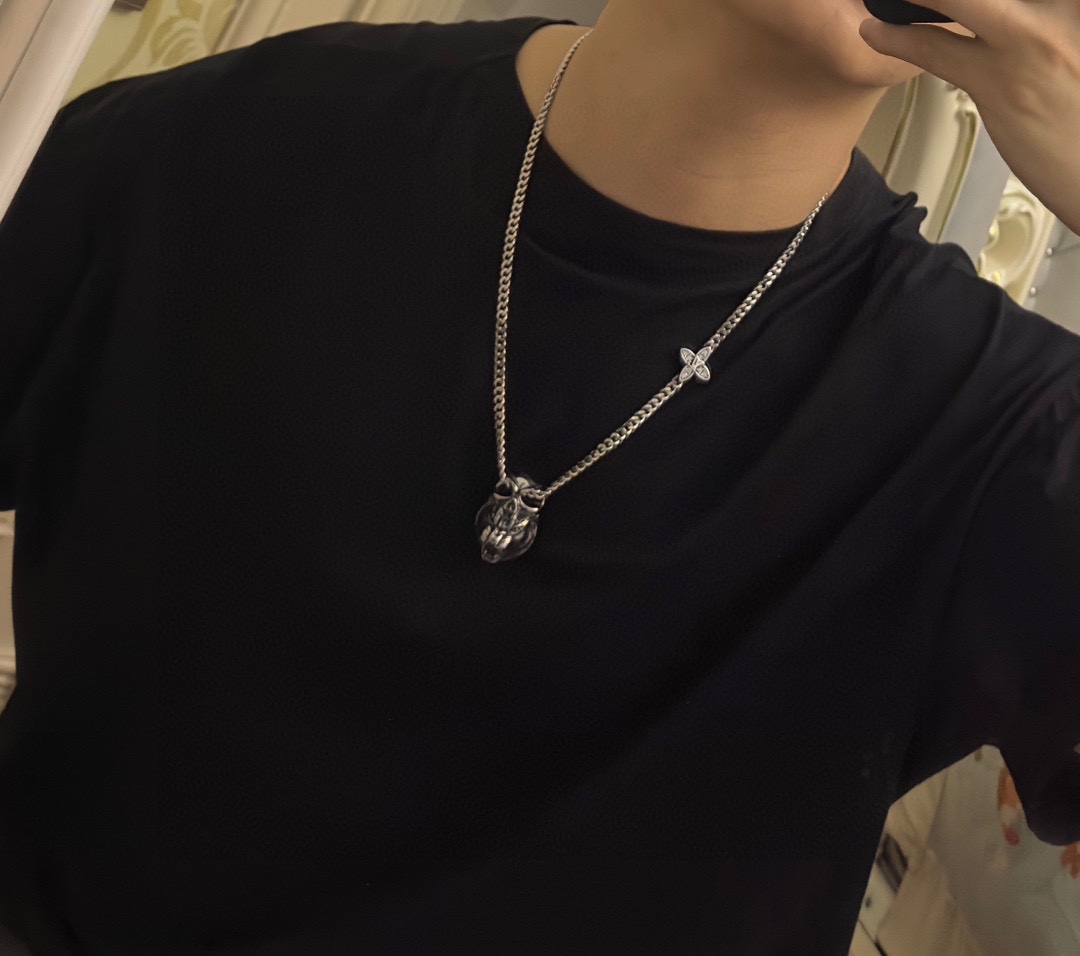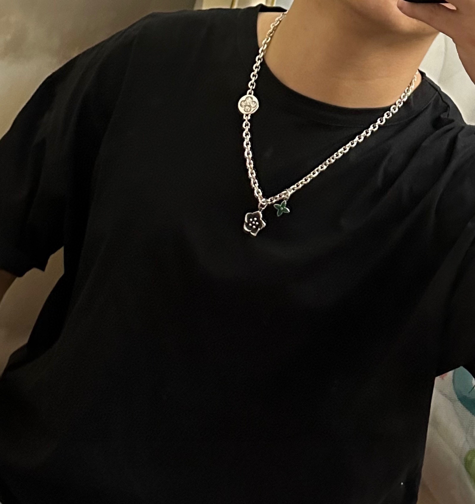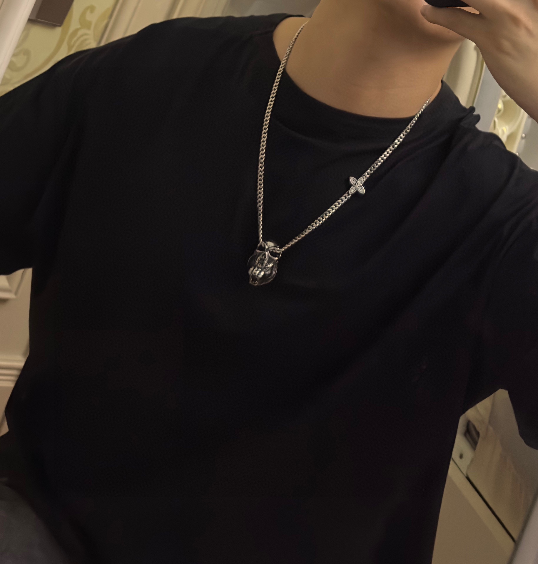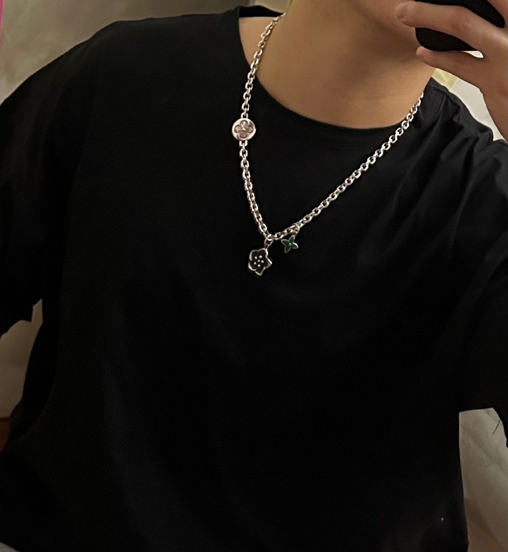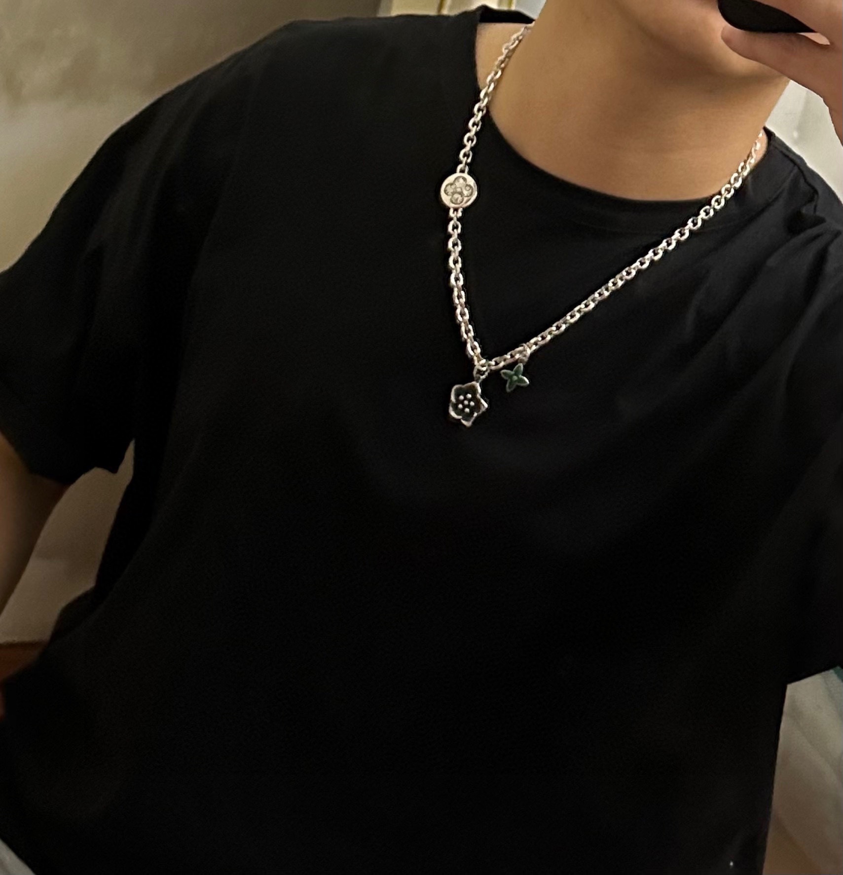 Louis Vuitton Rockabilly punk thai silver vintage silver necklace for couples with a 60cm chain length that can be changed