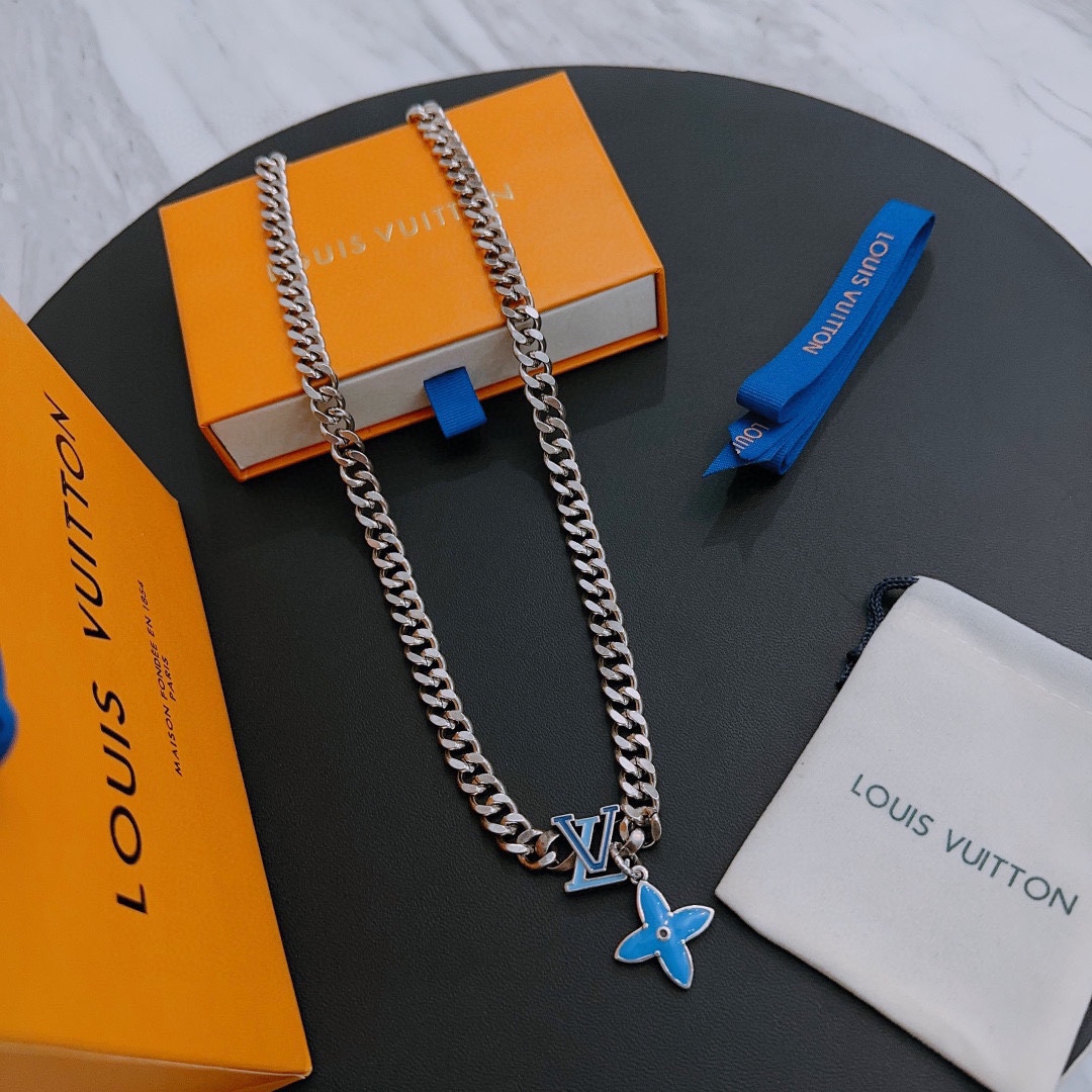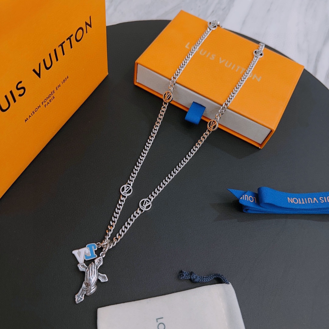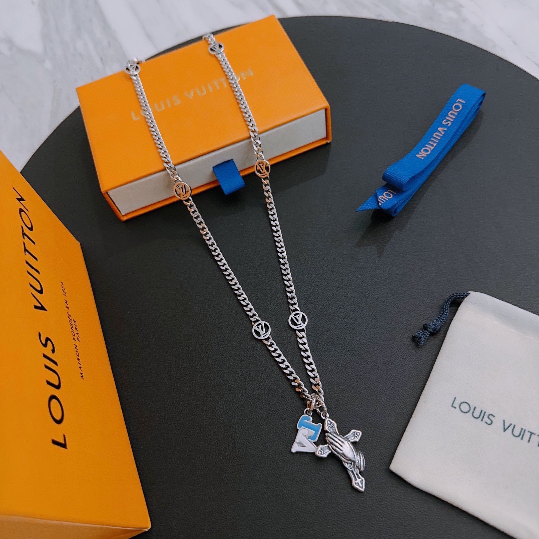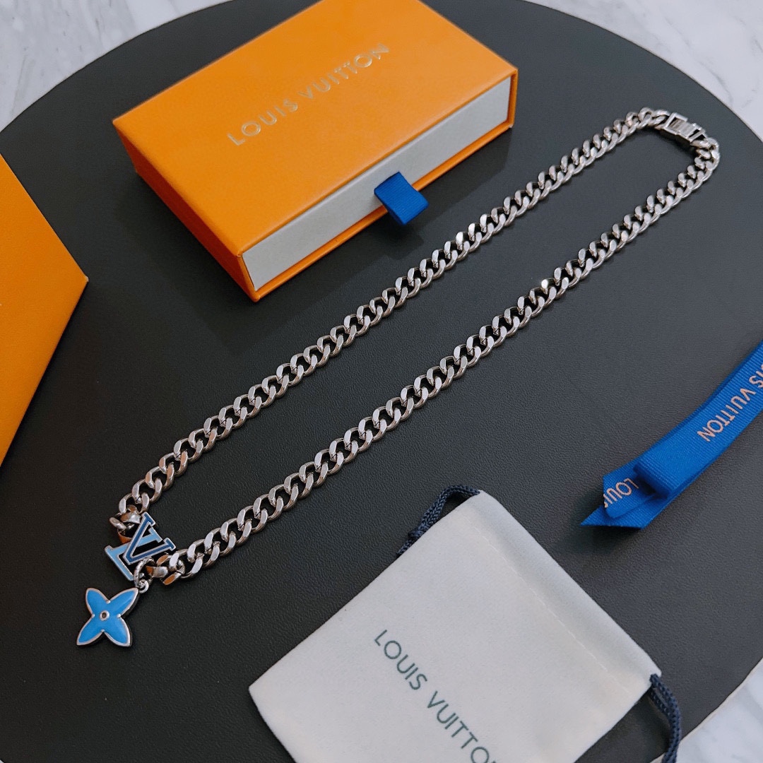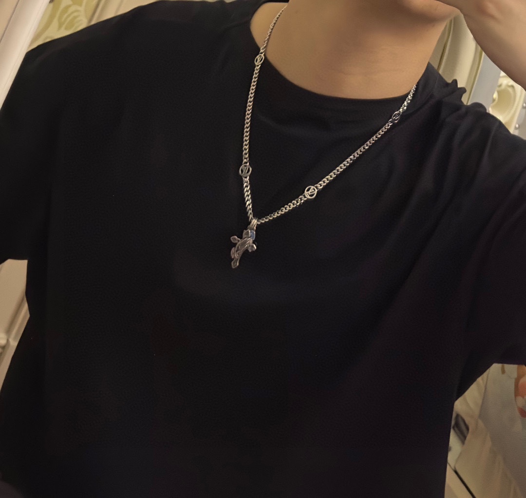 Louis Vuitton Rockabilly punk thai silver vintage silver necklace for couples with 60cm adjustable length