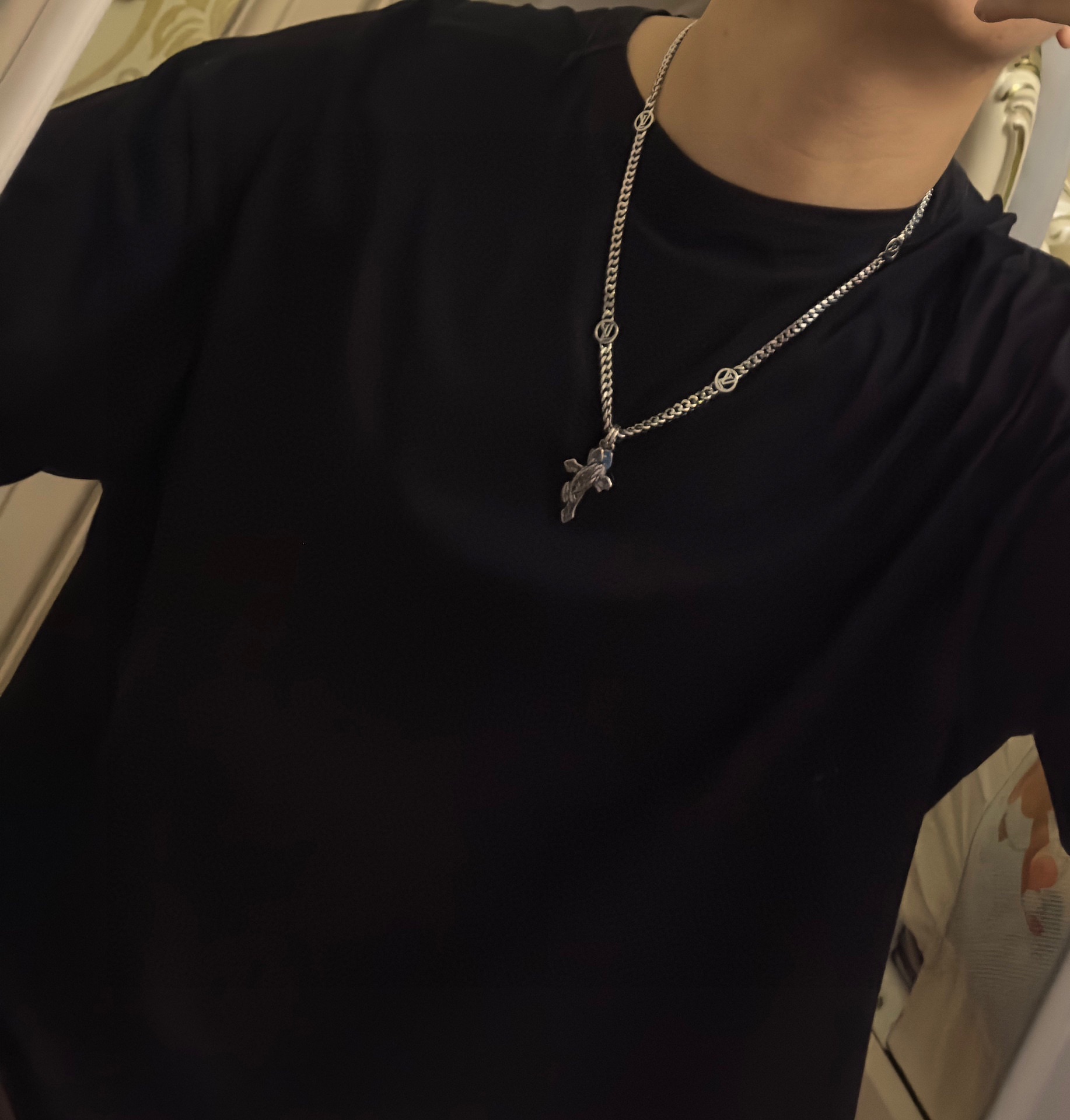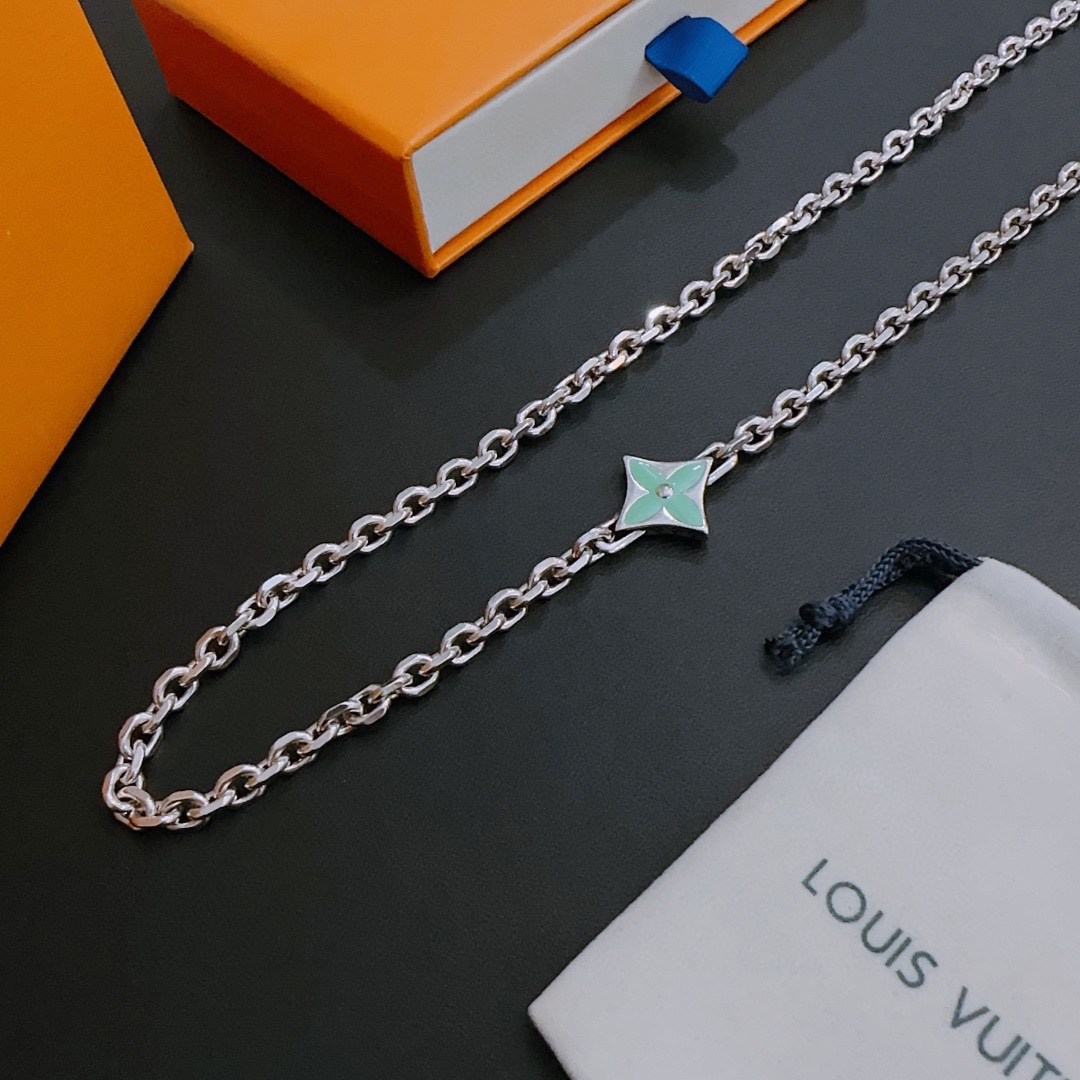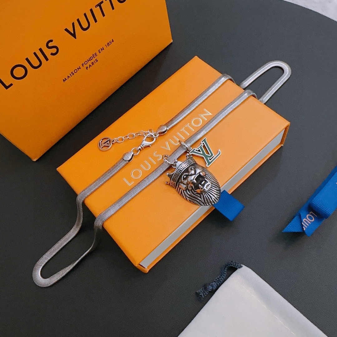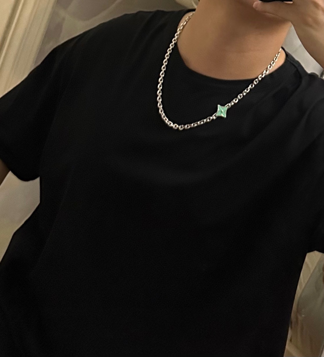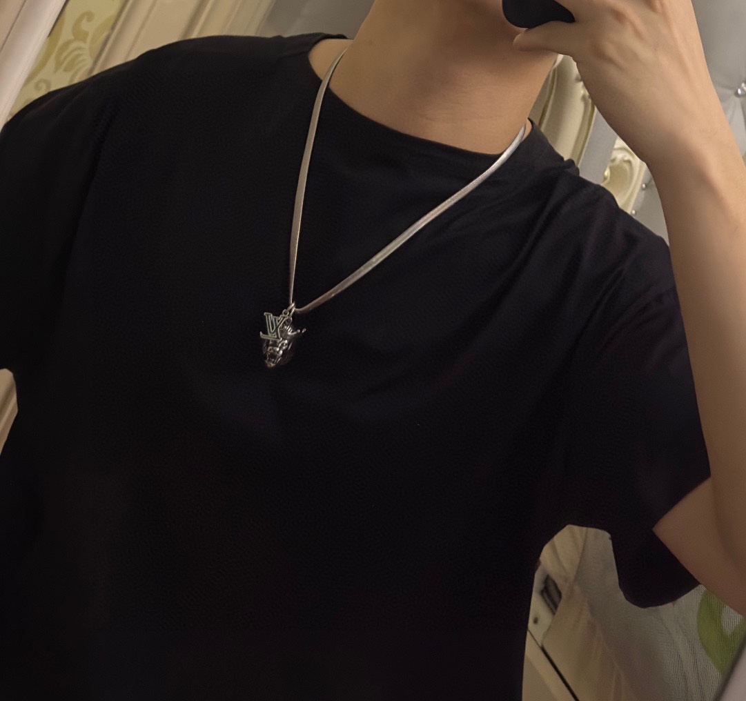 Louis Vuitton multi-element onyx thai silver style necklace couple's matching rock punk thai silver style