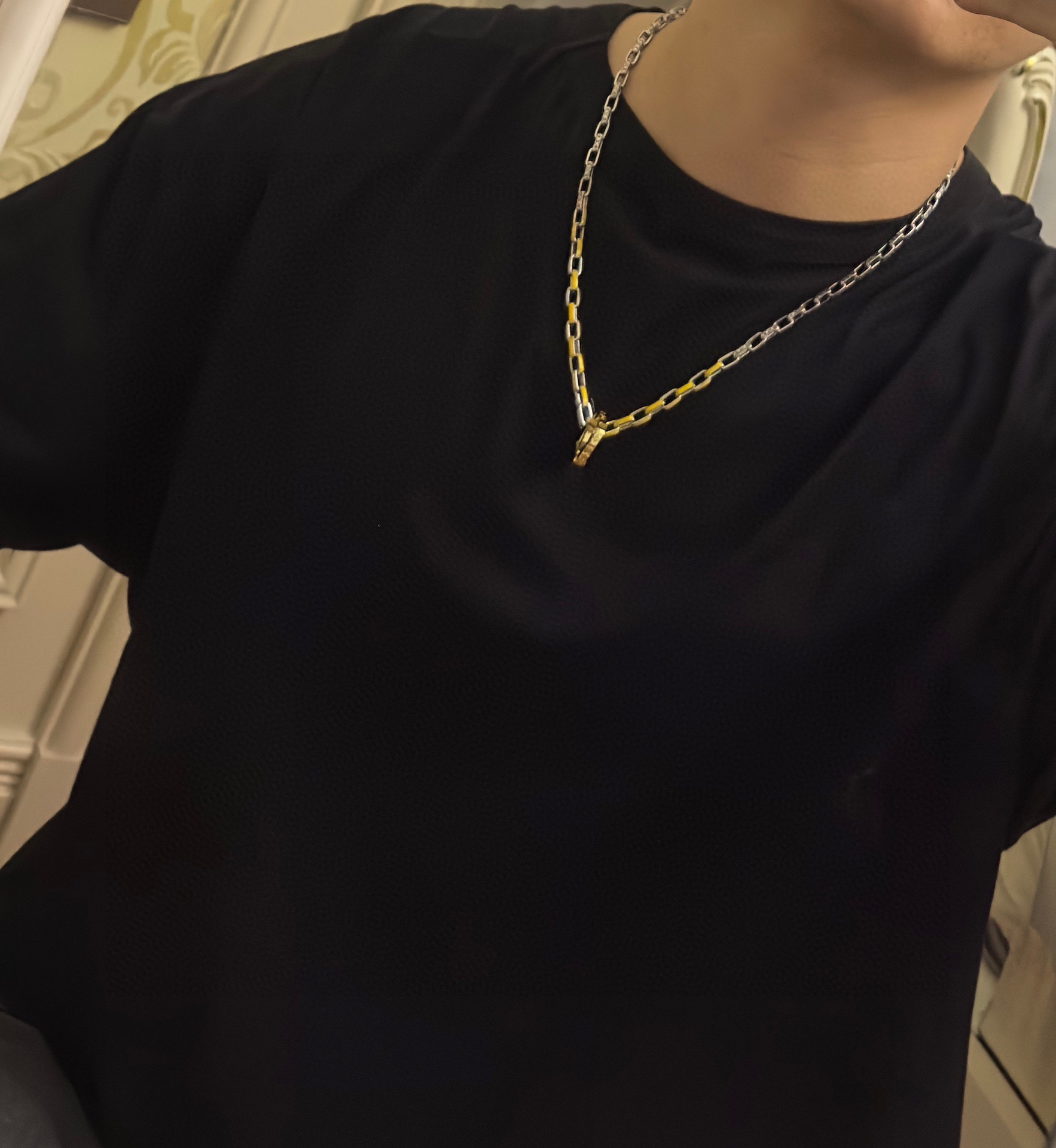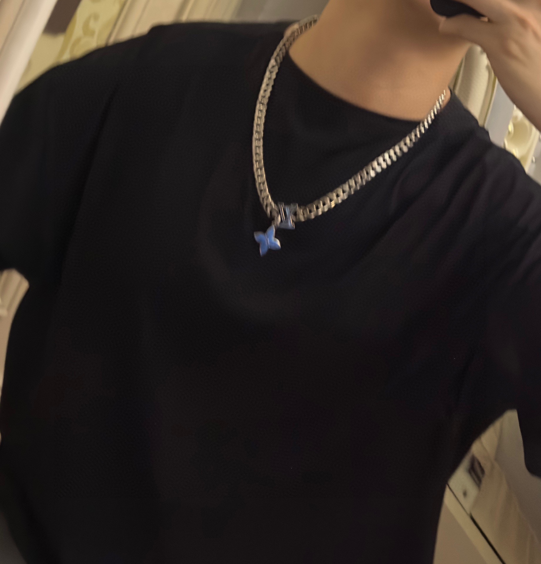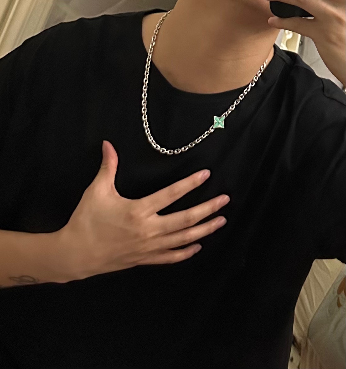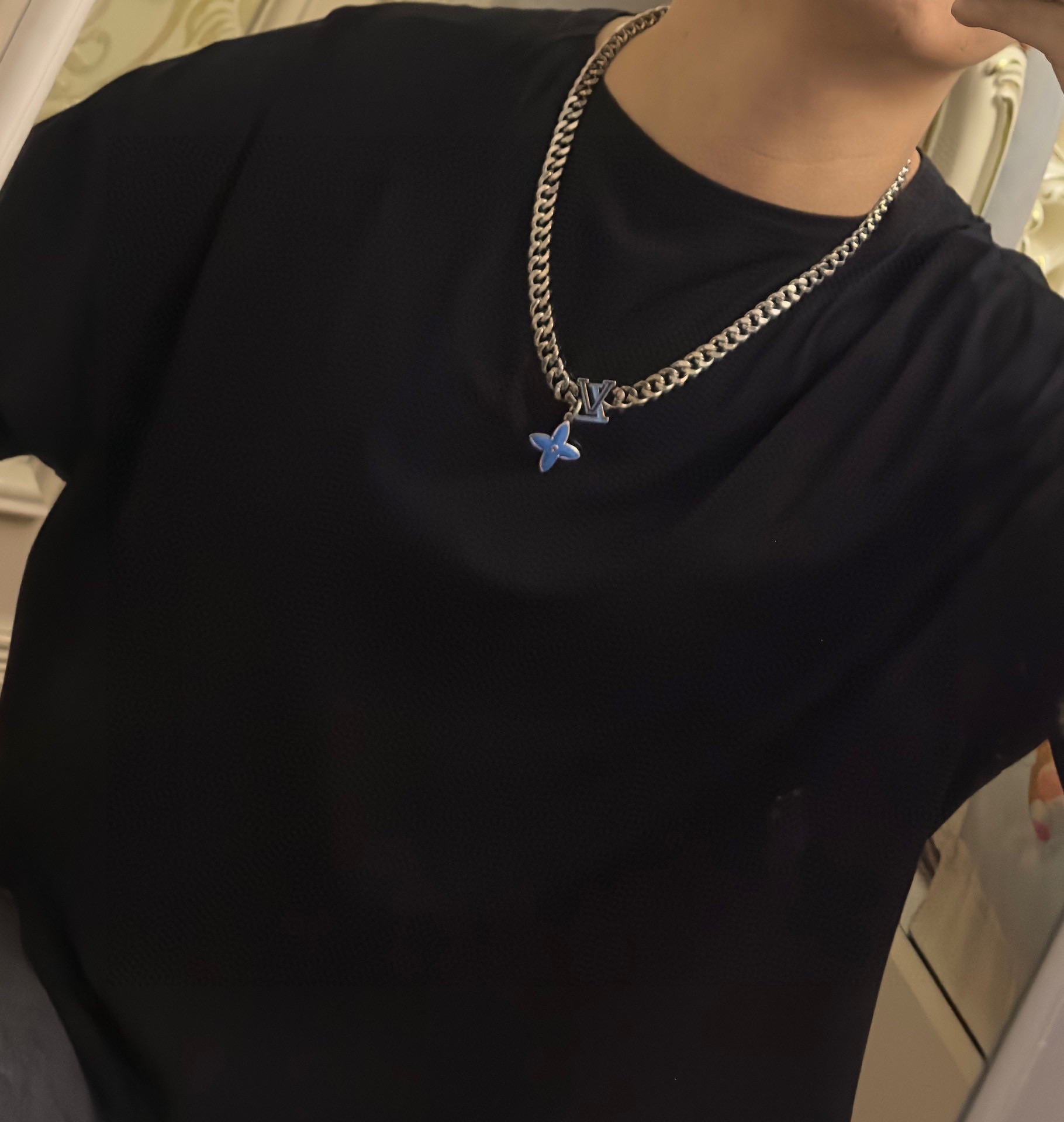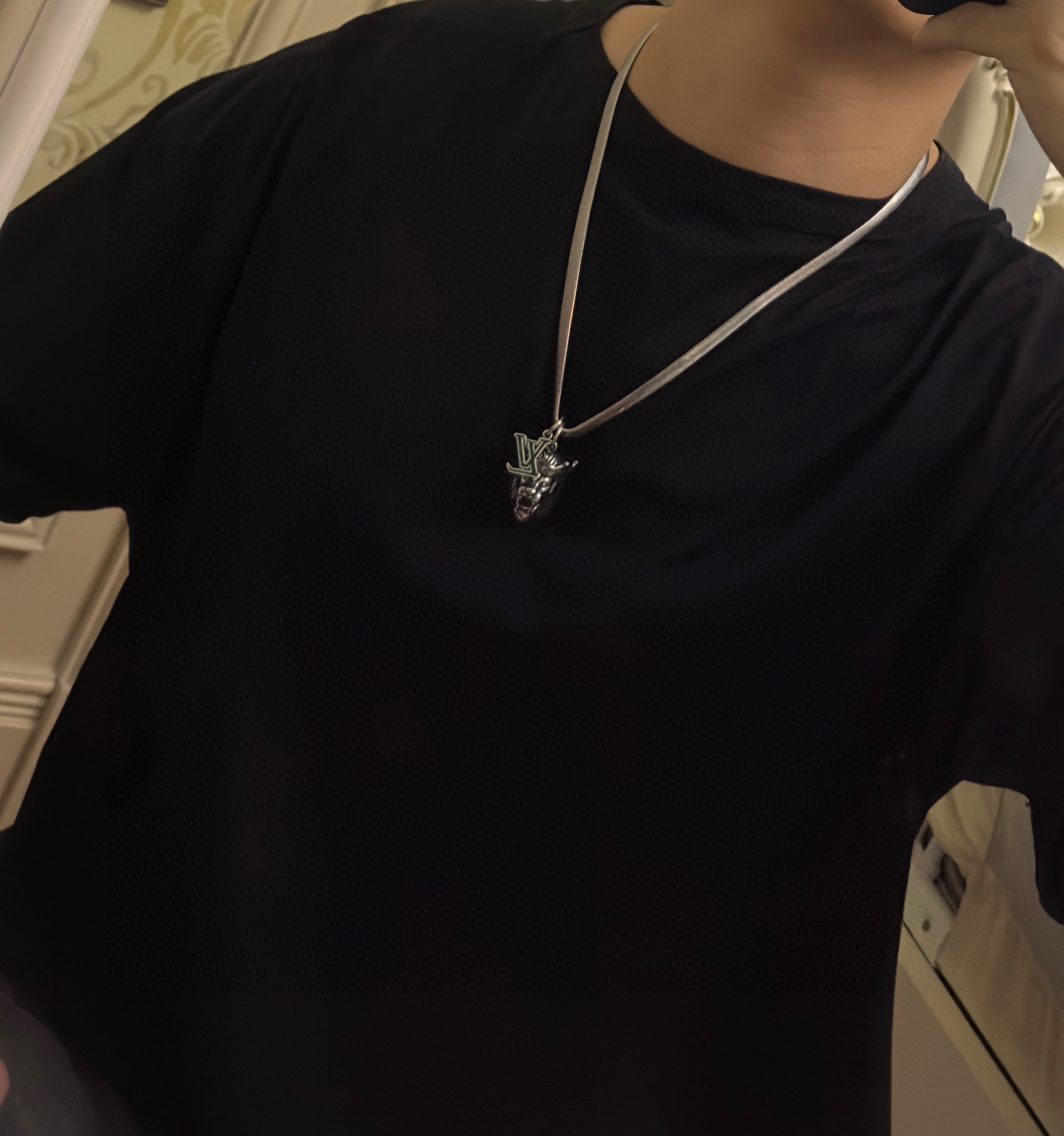 Louis Vuitton multi-element onyx thai silver style necklace couple's matching rock punk thai silver style