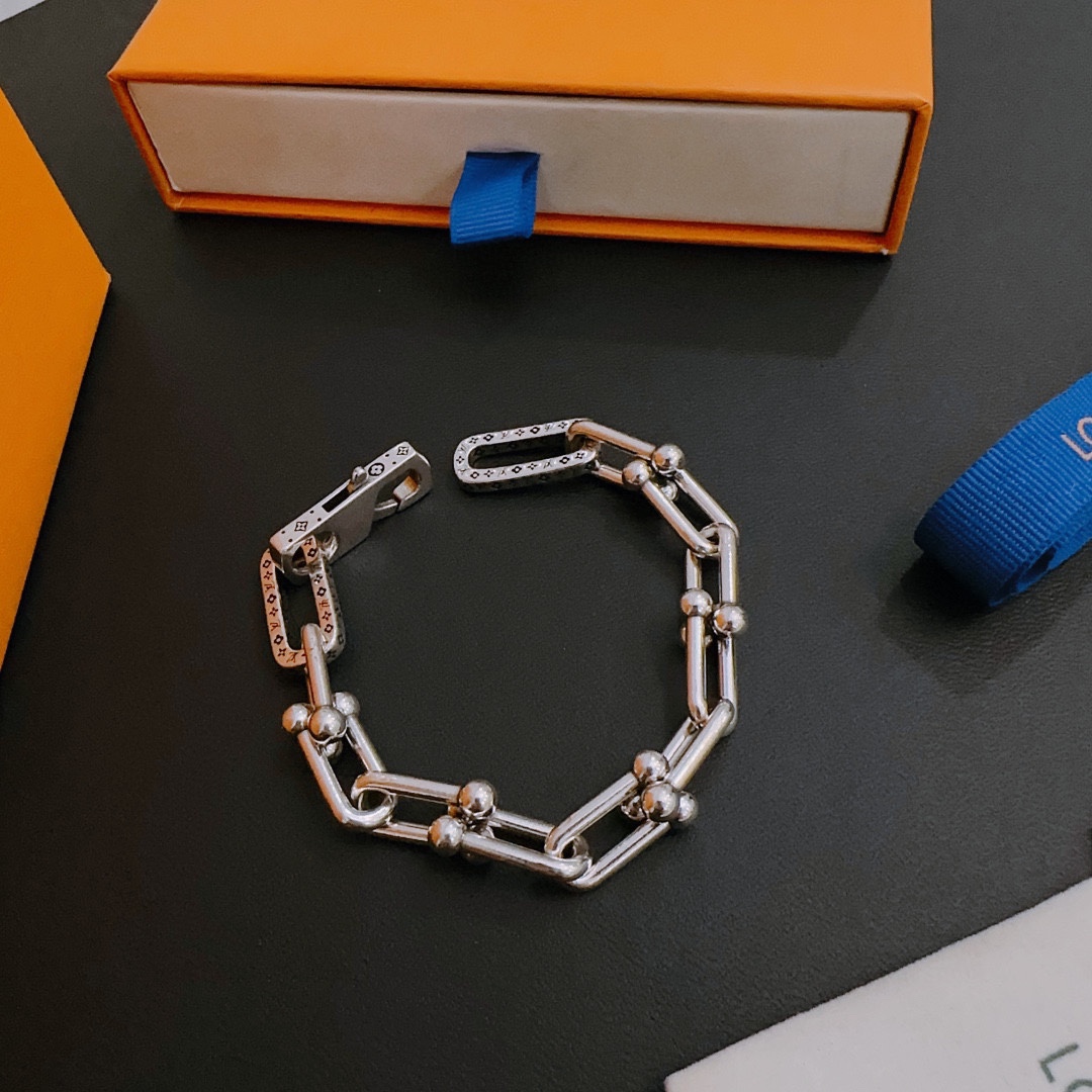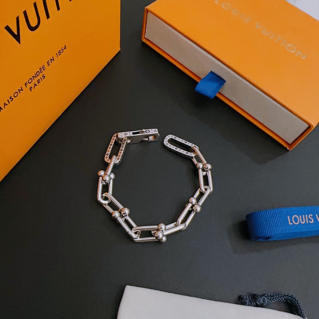Louis Vuitton Cuban Chain Collection Vintage Silver Bracelet Couple's version 22cm20cm18cm changeable length
