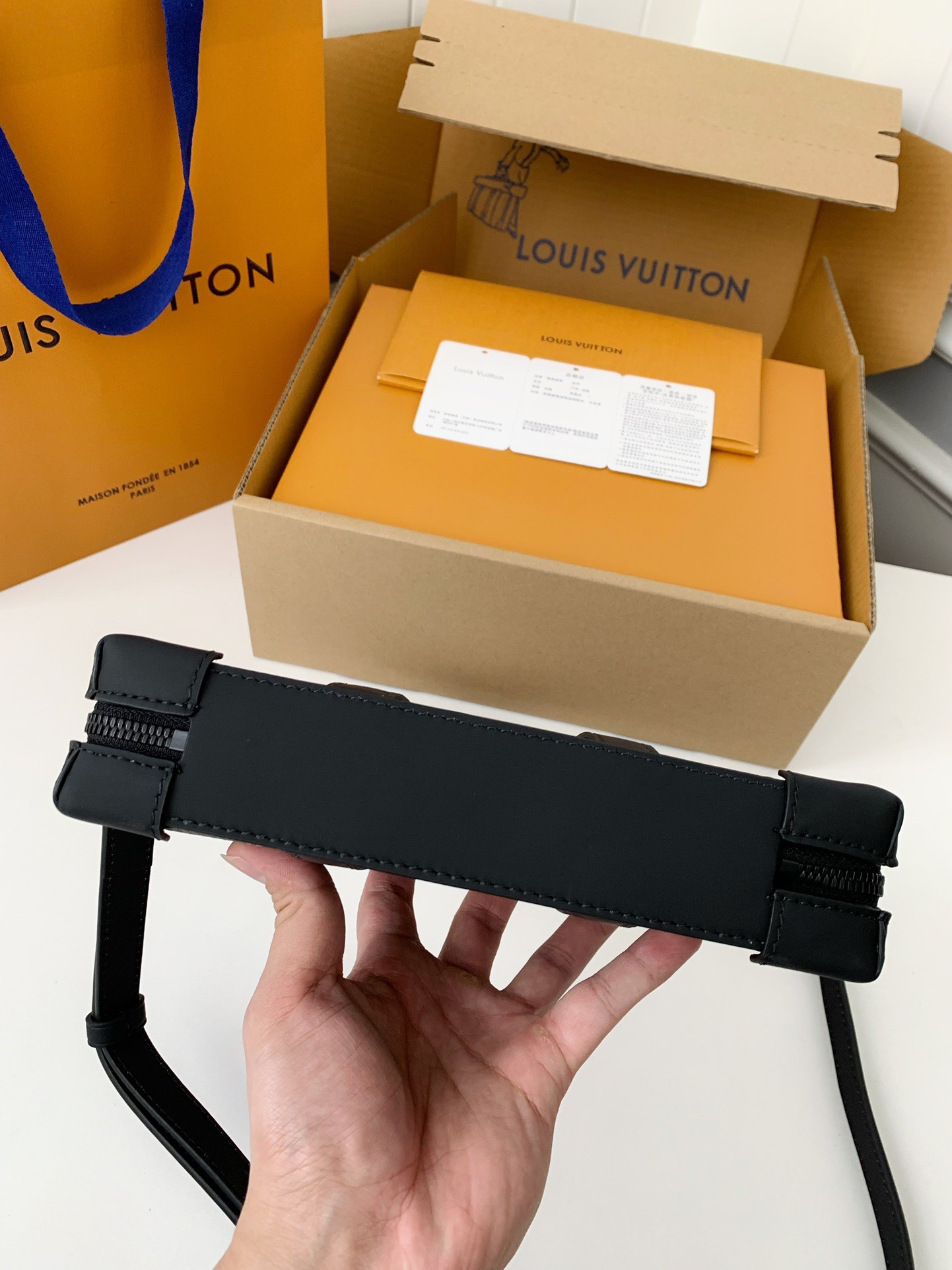 Louis Vuitton's new Sac Plat Horizontal Zippé men's black flower briefcase M45165 Size: 22.5*14*5cm