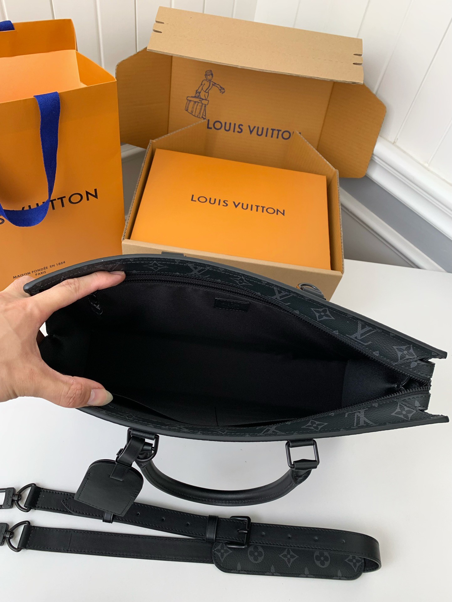Louis Vuitton's new Sac Plat Horizontal Zippé men's black flower briefcase M45165 Size: 31*39*8.5cm