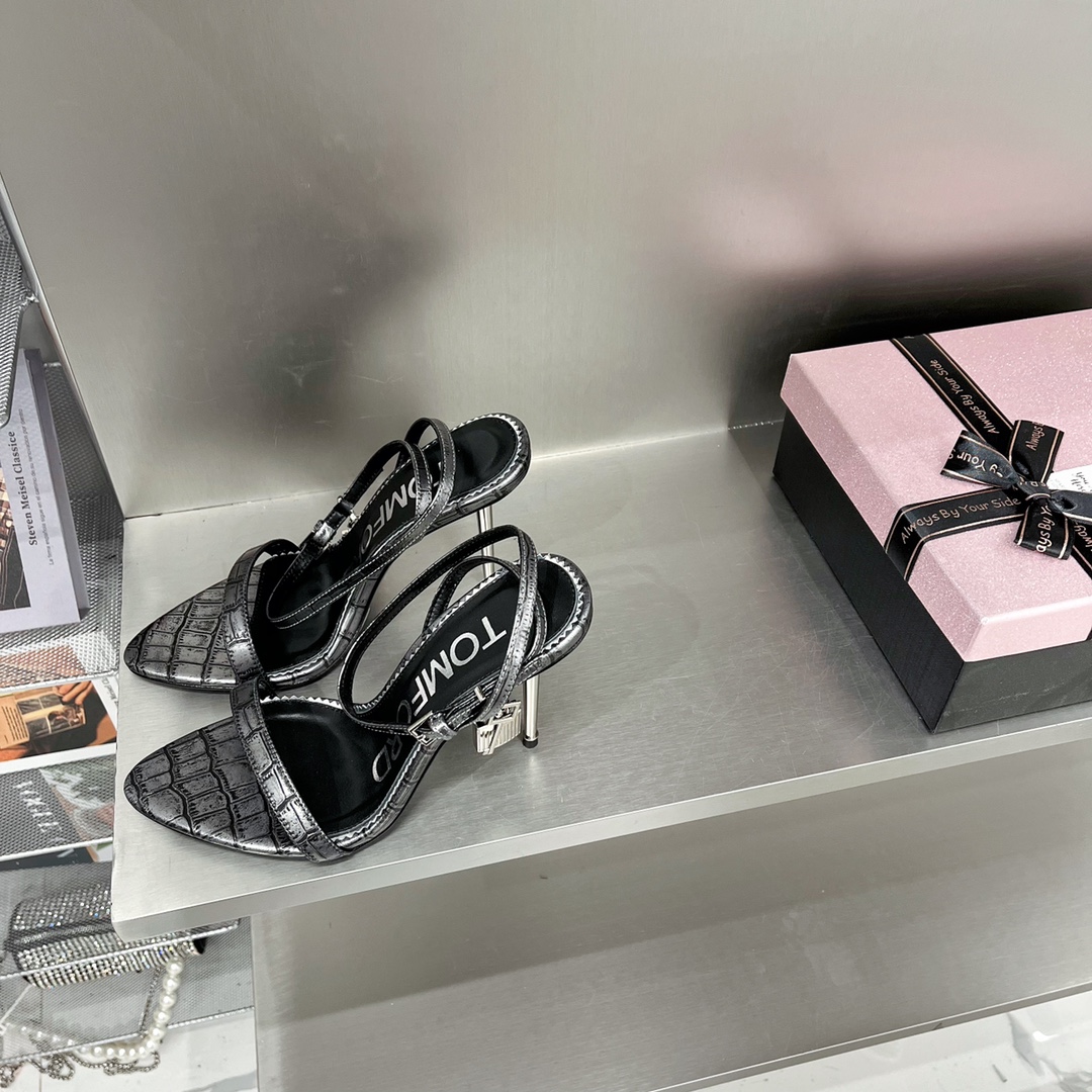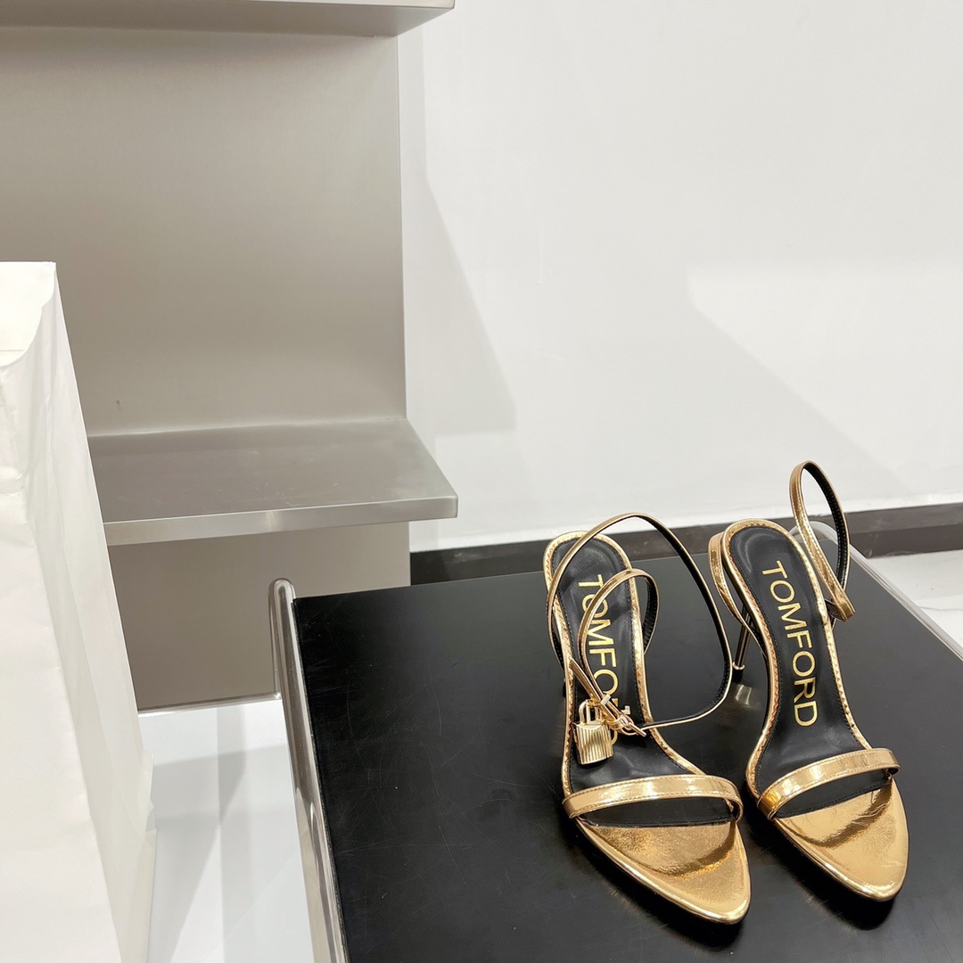 𝒕𝒐𝒎𝒇𝒐𝒓𝒅 𝟐𝟎𝟐𝟐/𝐒𝐒 𝐧𝐞𝐰 TF Tom Ford Gold Heel Padlock Sandals
