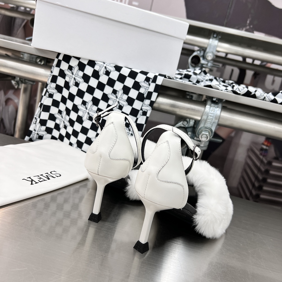 𝐒𝐌𝐅𝐊 |𝟐𝟎𝟐𝟐/𝐒𝐒 𝐧𝐞𝐰 SMFK 2022 Cross Flower First One Strap Thin Heel Cross Otter Rabbit Fur Sandals