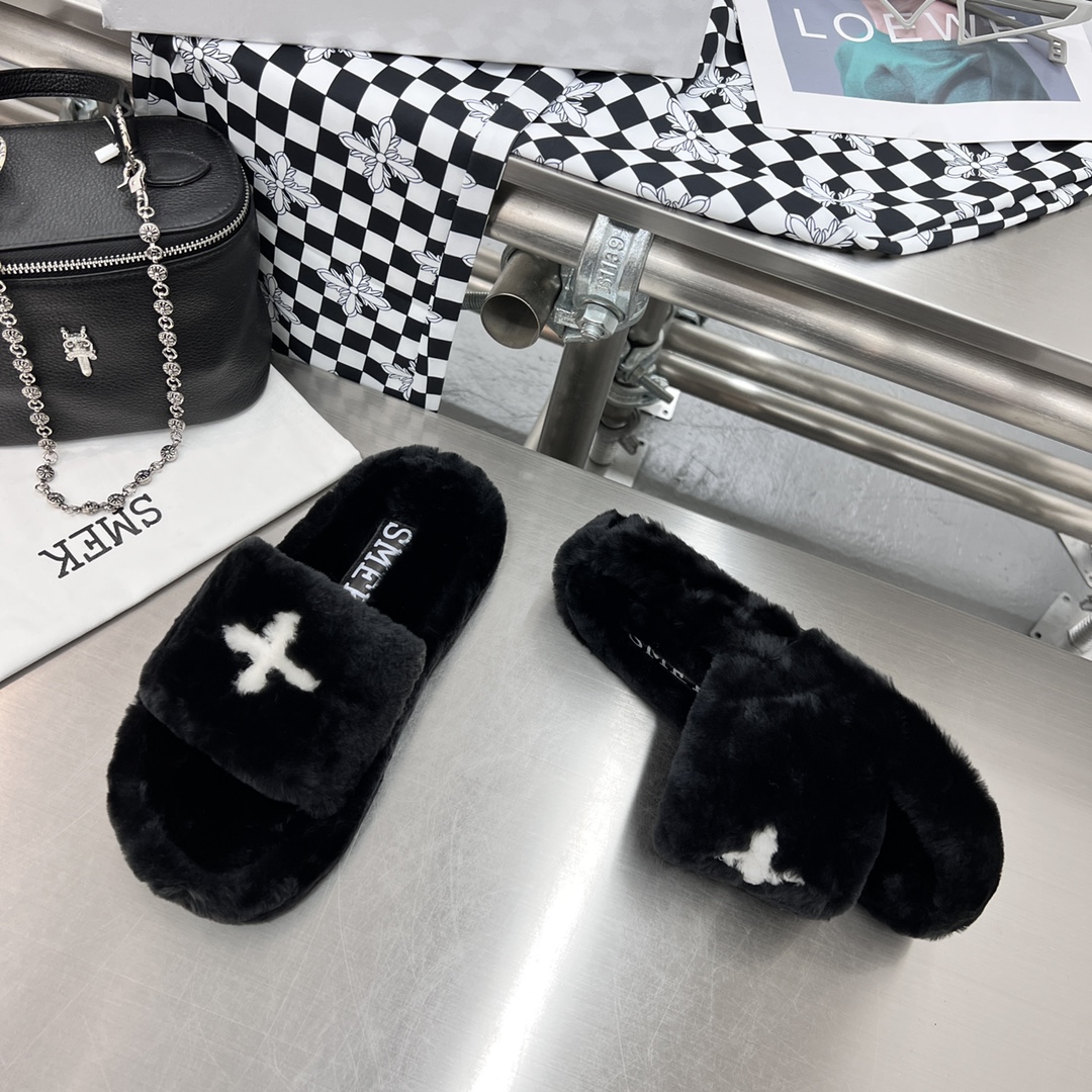 𝐒𝐌𝐅𝐊|𝟐𝟎𝟐𝟐/𝐒𝐒 𝐧𝐞𝐰 Thick sole woolen slippers Sheepskin padded feet logo clearly visible Customized rubber non-slip outsole