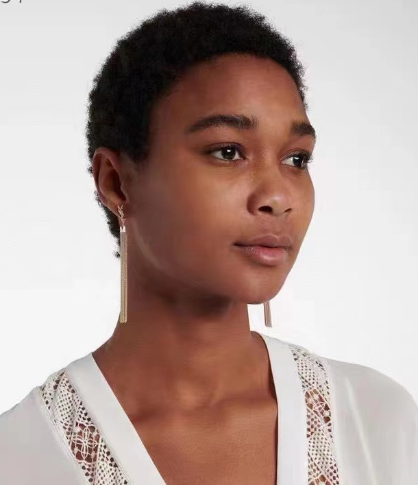 Saint Laurent YSL Tassel Chain Clause Ear Clap Stud Earrings