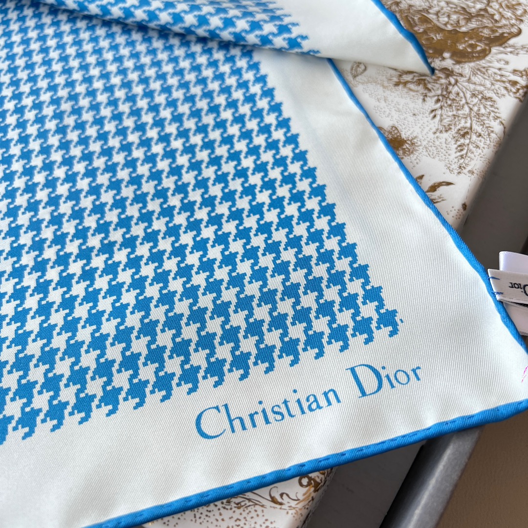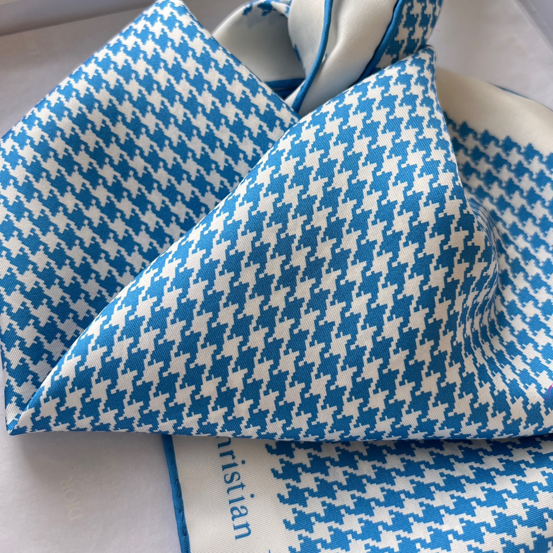 𝐃𝐢𝐨𝐫 ·"Houndstooth Square Scarf" Blue 100% Silk