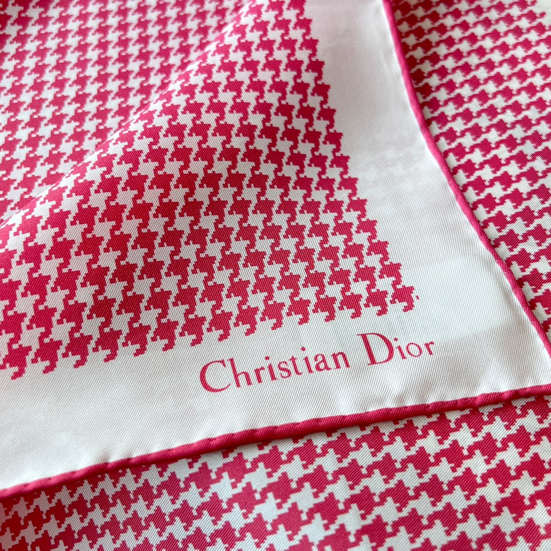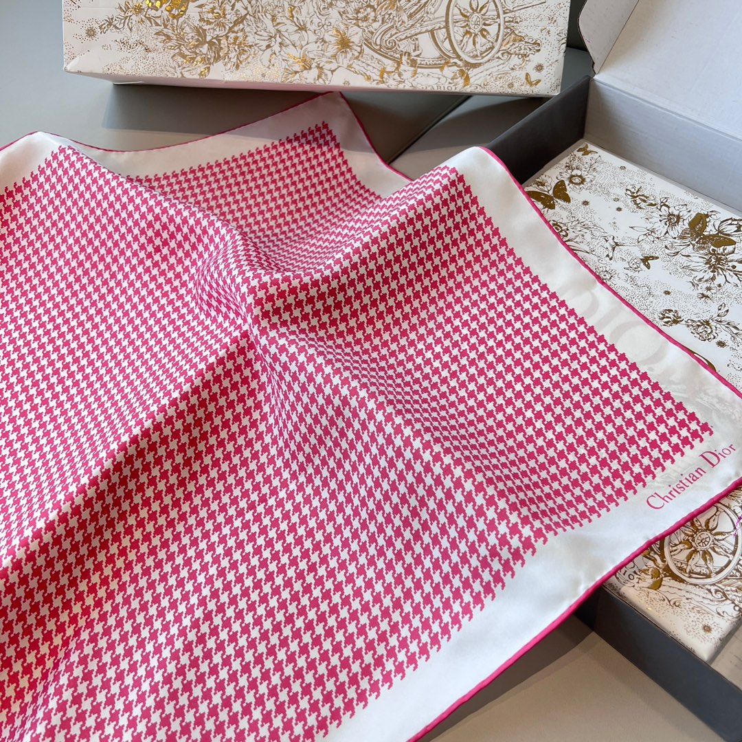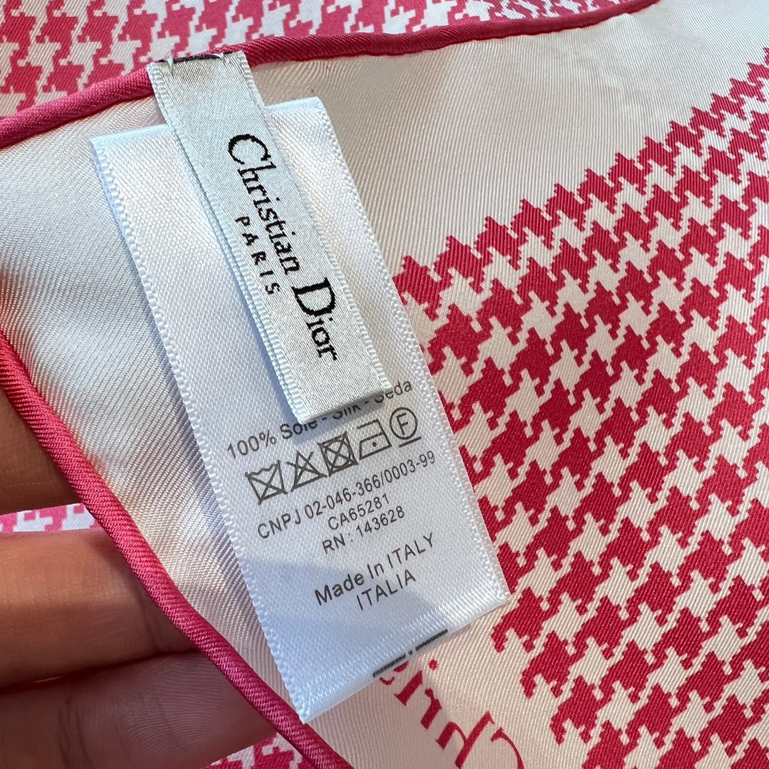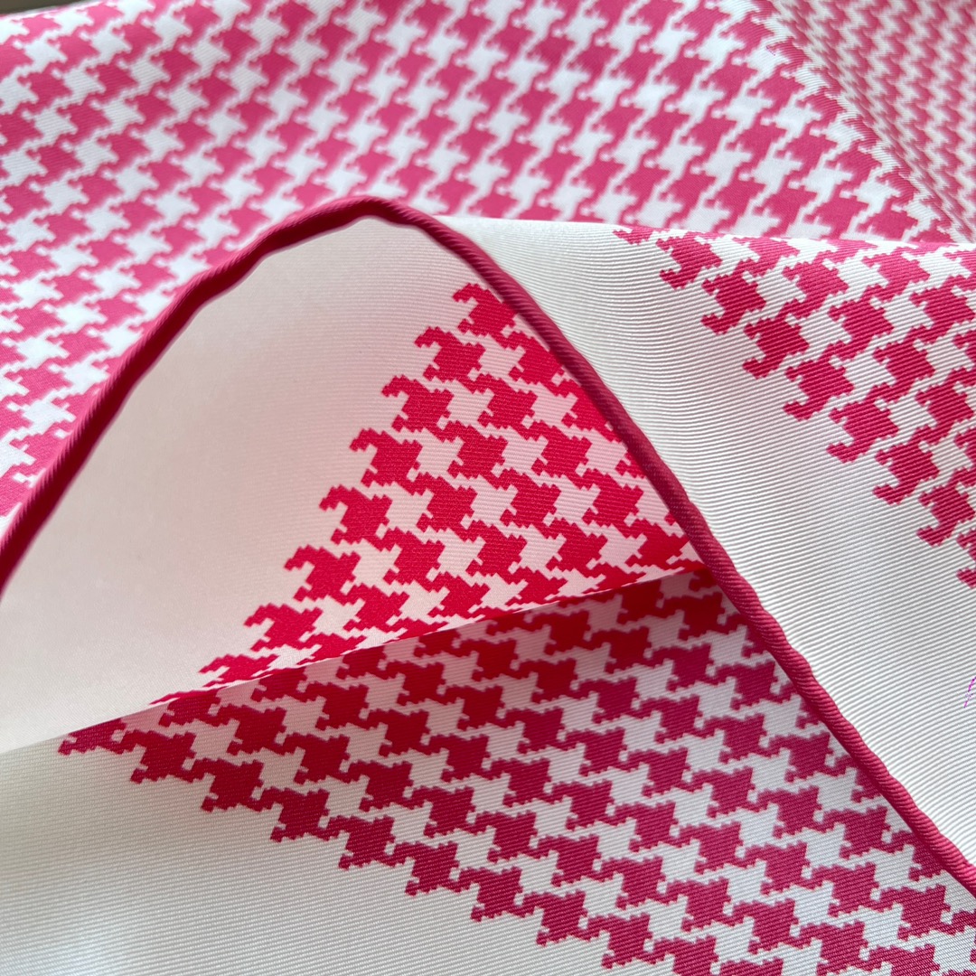 𝐃𝐢𝐨𝐫 ·"Houndstooth Square Scarf" rose red 100% mulberry silk