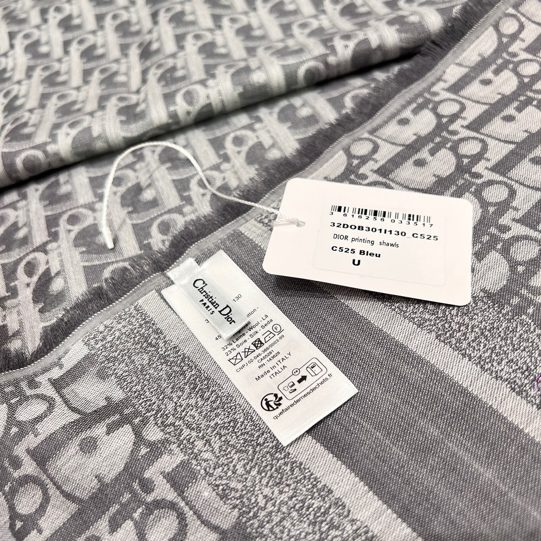 𝐃𝐢𝐨𝐫 · 23款新款牛仔系列-字母长巾浅灰色45%棉32%羊毛23%真丝