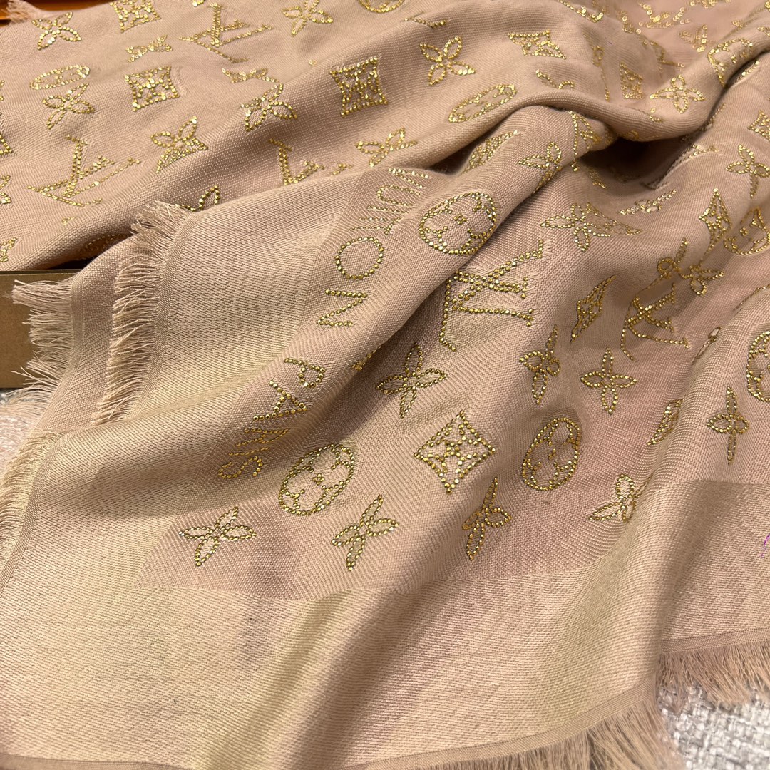 𝐋𝐨𝐮𝐢𝐬 𝐯𝐮𝐢𝐭𝐭𝐨𝐧 "MORE MONOGRAM Nailed Shawl" Champagne gold silk wool material