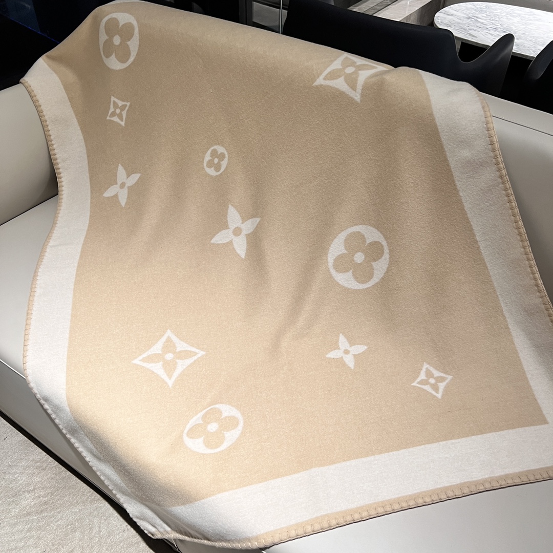 𝐋𝐨𝐮𝐢𝐬 𝐕𝐮𝐢𝐭𝐭𝐨𝐧 "Flower Blanket" Cream 90% Sheep Wool 10% Cashmere Reversible