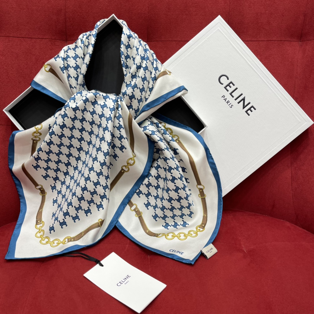𝐂𝐞𝐥𝐢𝐧𝐞 Retro-style Arc de Triomphe element scarf 100% silk