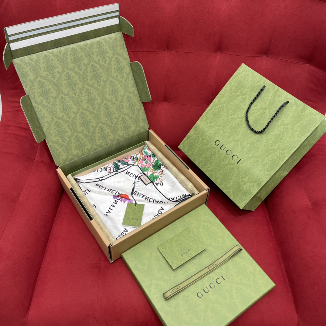 𝐆𝐔𝐂𝐂𝐈 𝐗 𝐁𝐀𝐋𝐄𝐍𝐂𝐈𝐀𝐆𝐀 joint model Balenciaga twill twill with floral pattern on ivory white background 100% mulberry silk