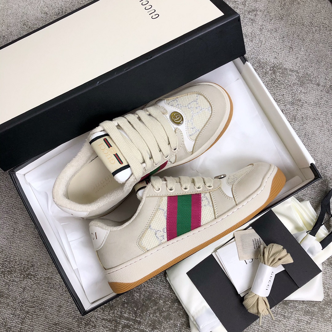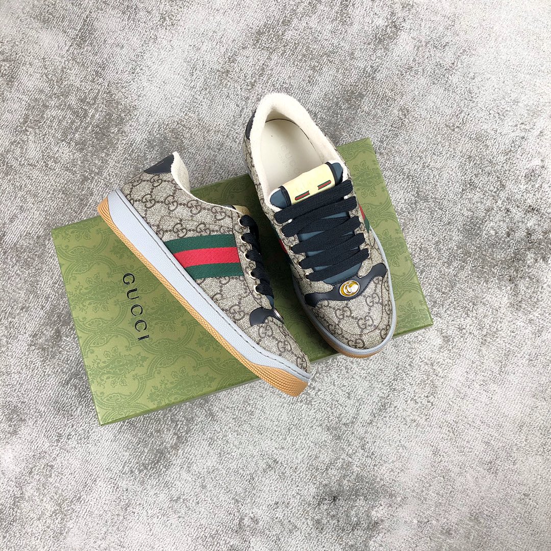 Gucci A very cool little dirty shoe with a vintage nostalgic look Custom fabric Cowhide Towel material