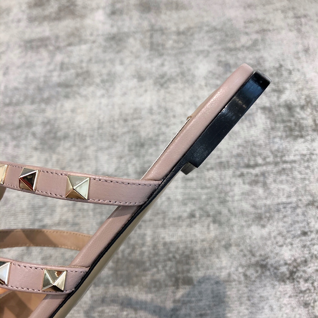 Valentino VT Three Strap Flat Heel Slipper Nude Pink