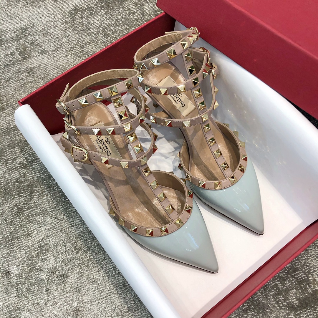 Valentino VT Collection Triple Strap Mid Heel 6.5cm Patent Leather Blue