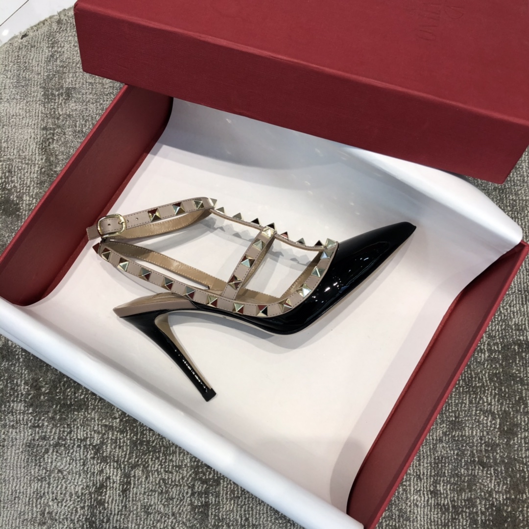 Valentino VT Collection Two Strap Mid Heel 10cm Patent Leather Black