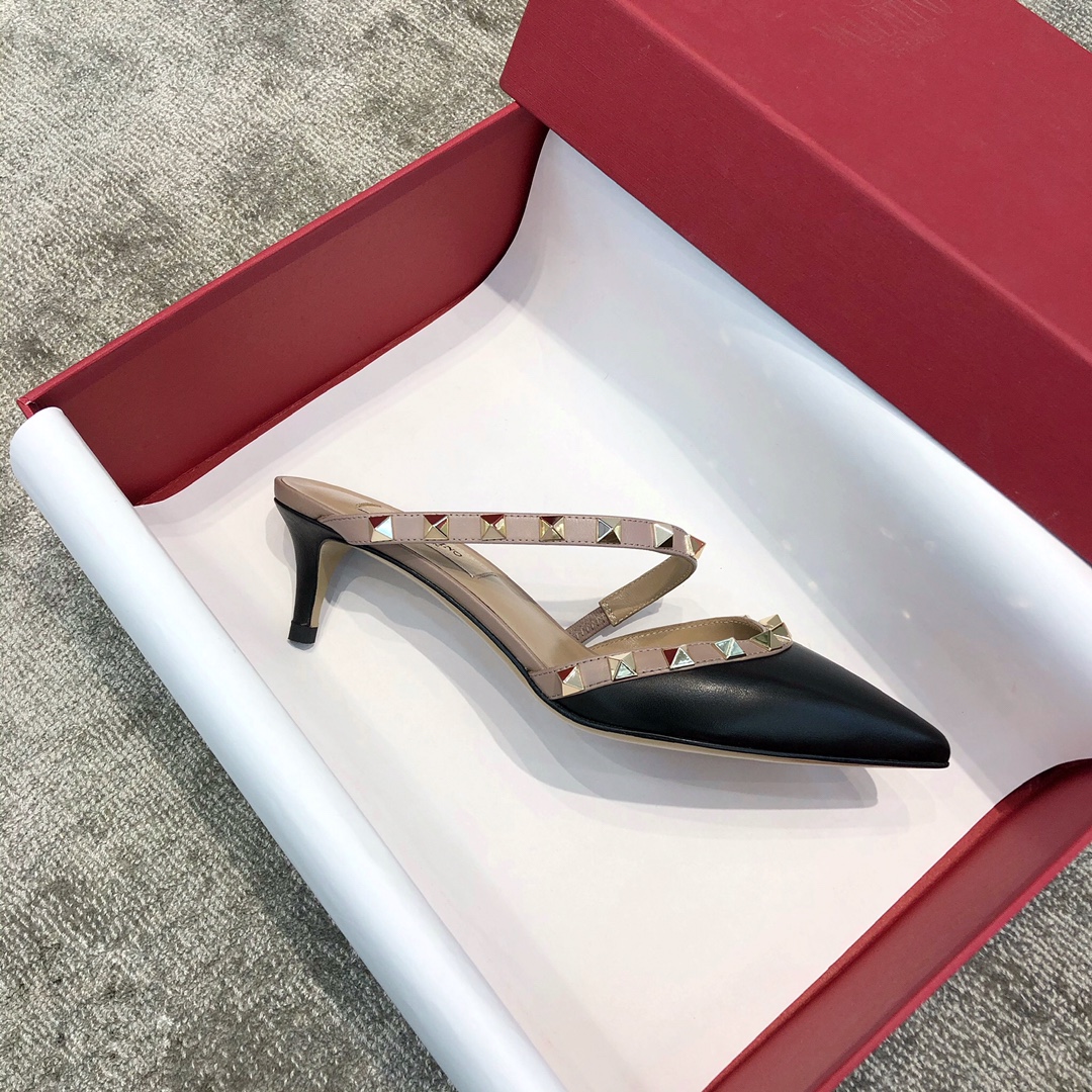 Valentino VT Collection One strap diagonal heel slipper 6.5CM Black nude laces